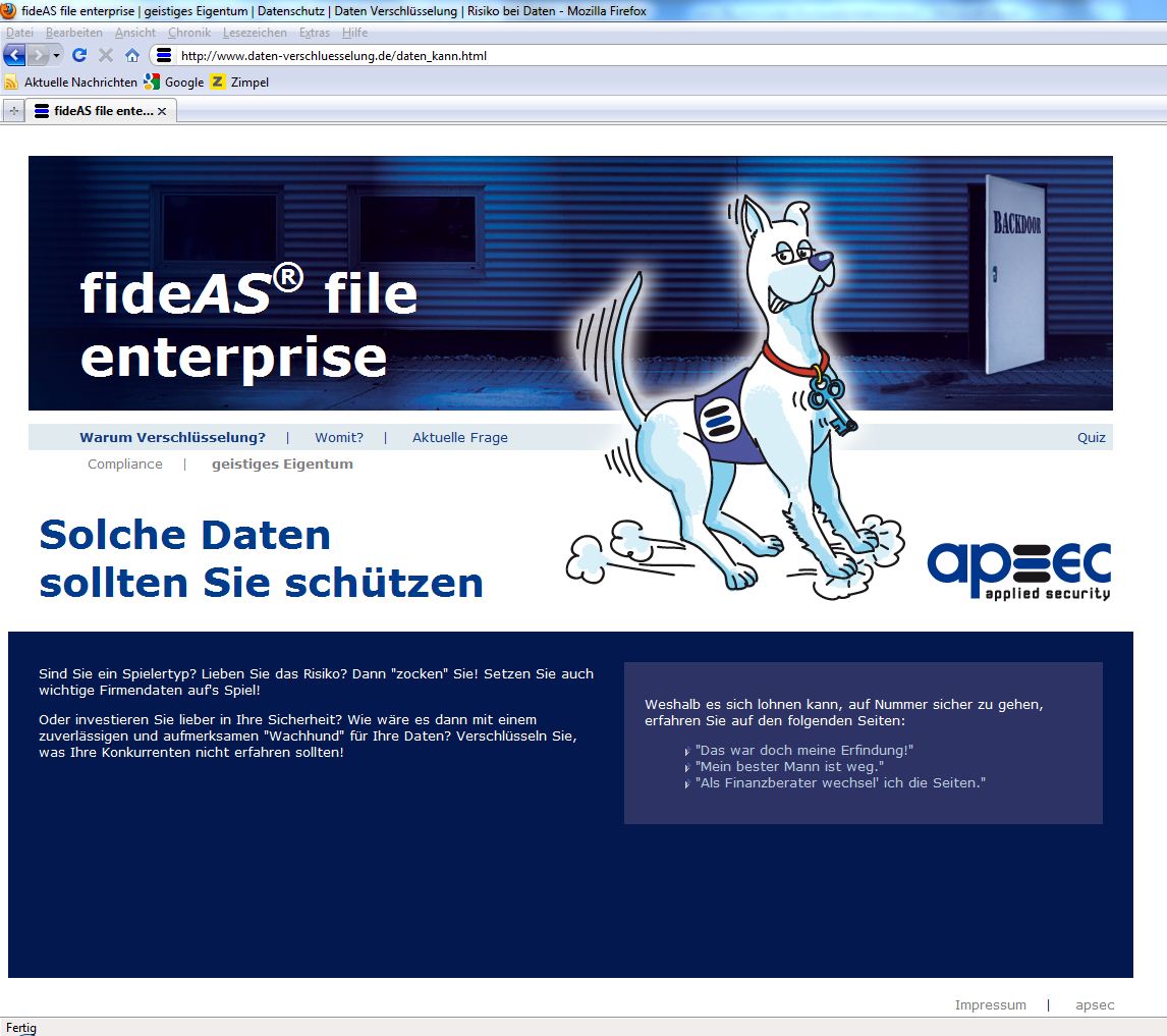 Verschlüsselungsportal von apsec: Informationen rund um wirksame Datensicherheit