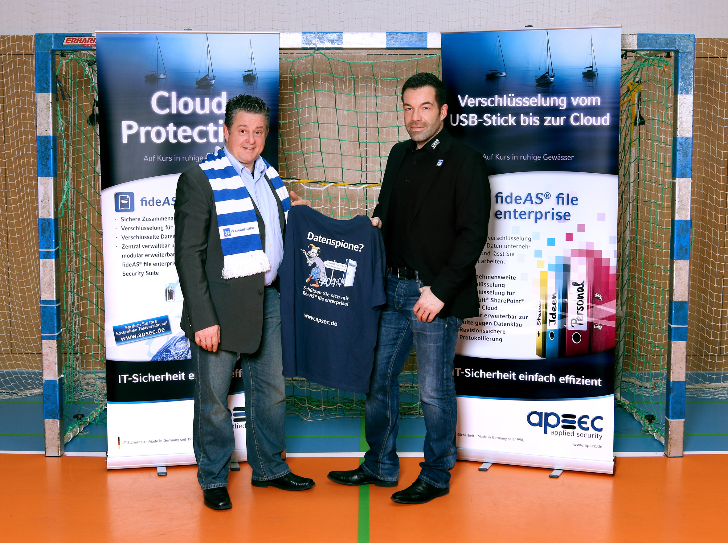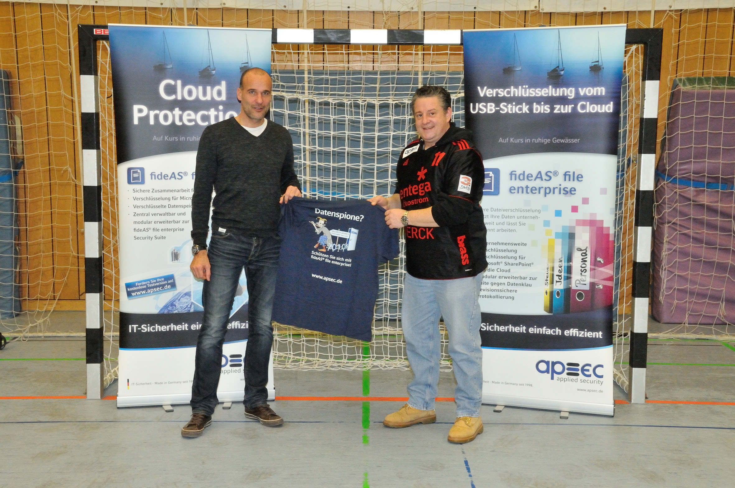 Mathias Horn (rechts), Director Operations & Projects bei apsec, und TVG-Handball-Abteilungsleiter Holger Zindt machen gemeinsame Sache für den sportlichen Erfolg.