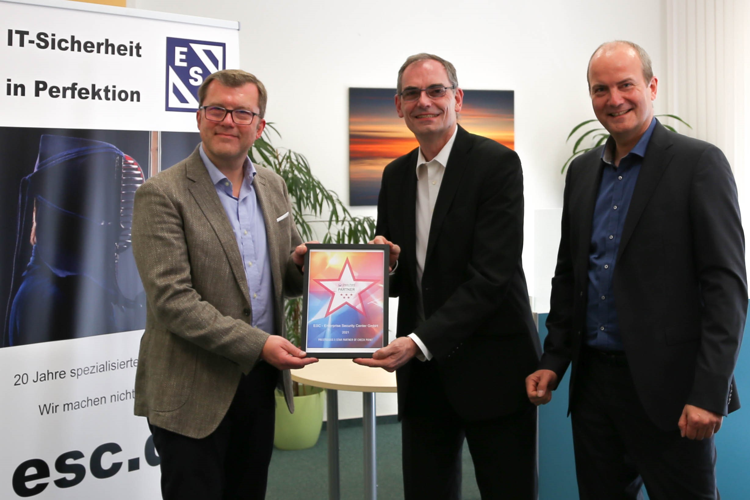 Übergabe des neuen Partnerstatus (vl. Bernd Sebode, Head of Channel Germany, Check Point; Gerhard Oppenhorst, Geschäftsführer ESC, René Stolzenburg, Vertriebsleiter und Geschäftsführer ESC)