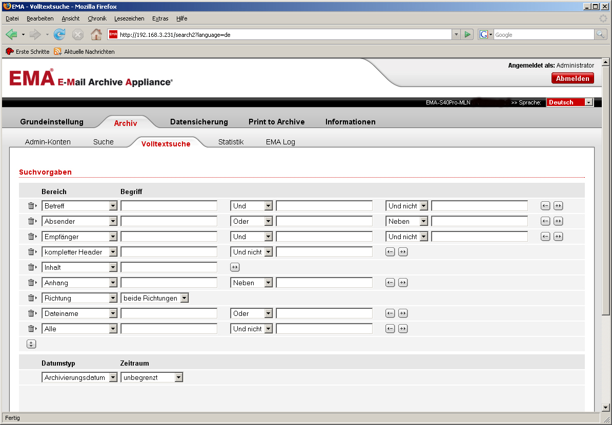 Die Applianace EMA von ARTEC archiviert E-Mails archivfest im Sinne der gesetzlichen Anforderungen