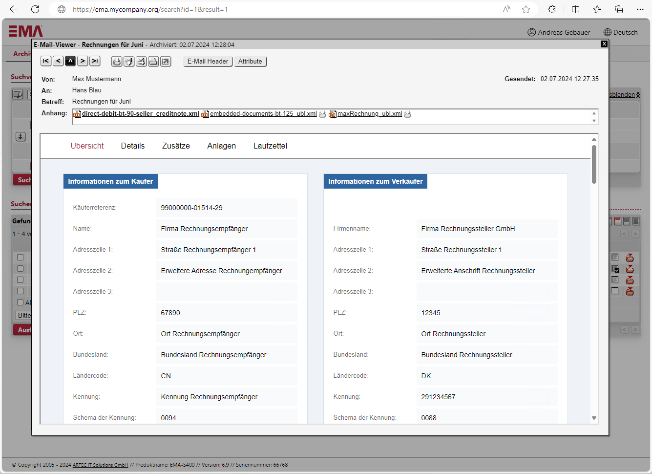 XRechnung_Ansicht im EMA Viewer_ARTEC IT Solutions