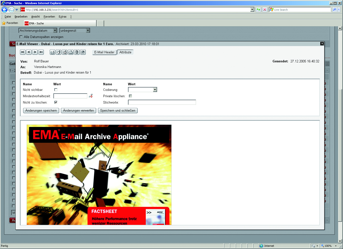 Screenshot EMA 3.8_Suchergebnis und Attribute (www.artec-it.de)
