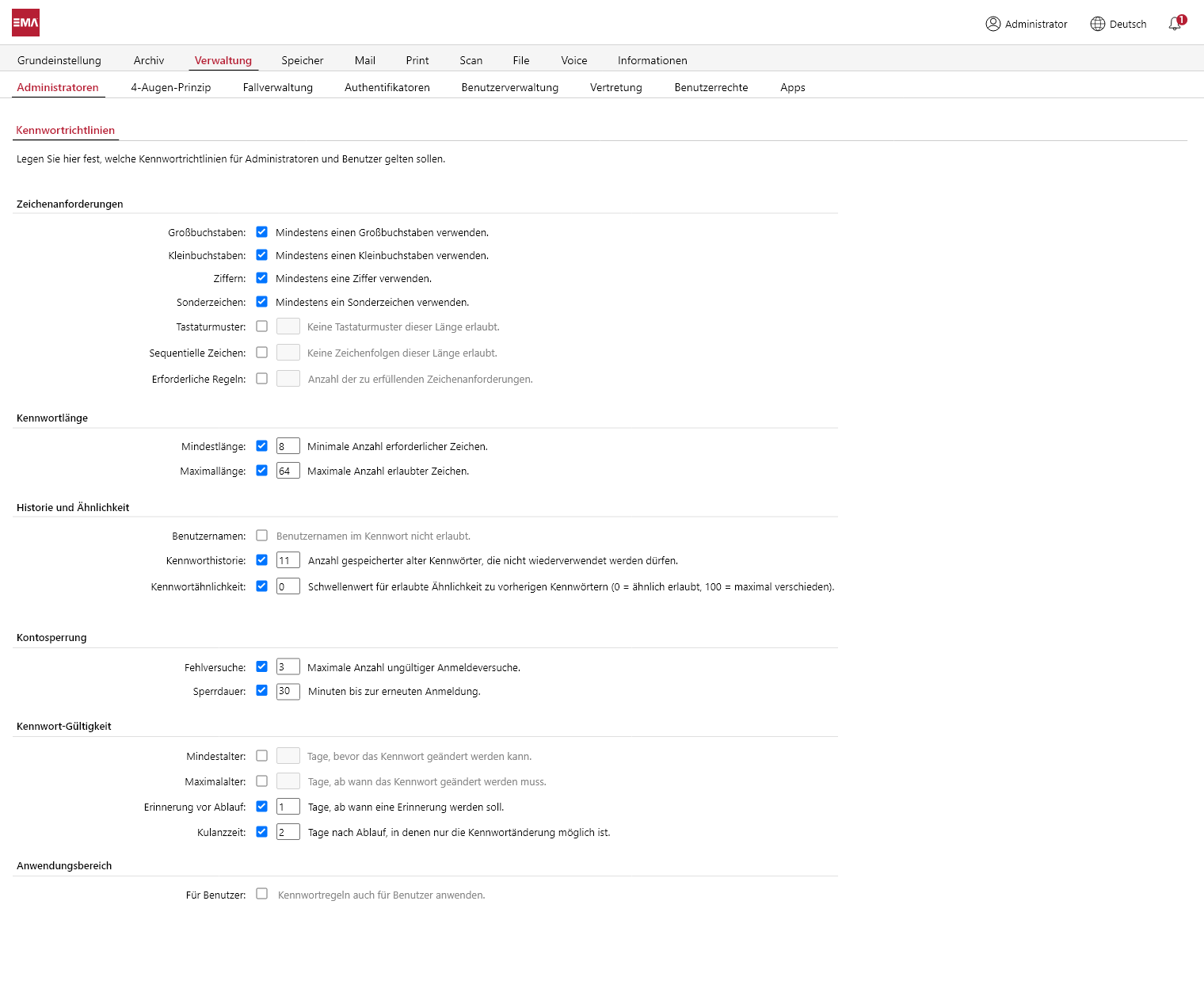 Screenshot EMA Kennwortrichtlinien_ARTEC IT Solutions