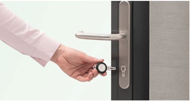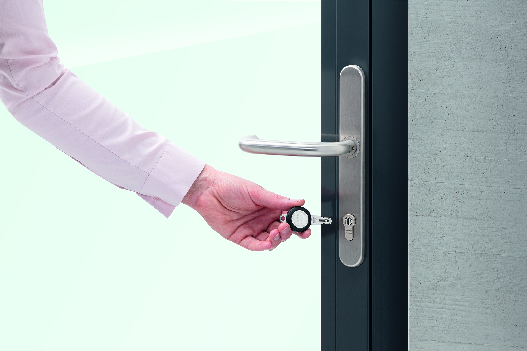 Der neue Aperio-Beschlag von effeff. Mit der neuen Technologie können Türen drahtlos ? und damit auf einfache und preisgünstige Art ? in bestehende Zutrittskontrollsysteme integriert werden