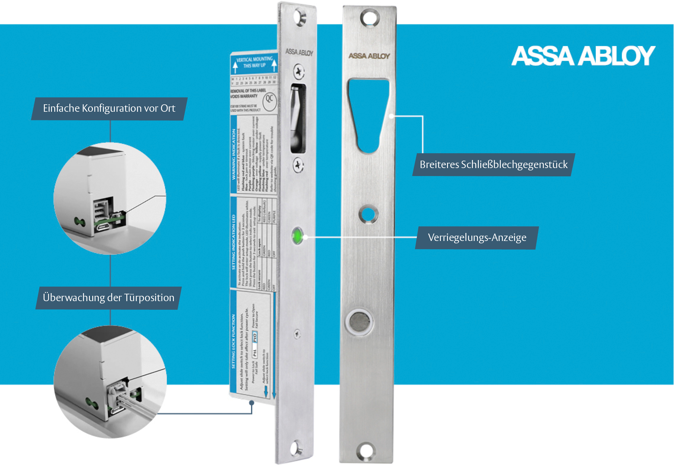 Der neue elektromechanische Riegel 842-SA1 von ASSA ABLOY überzeugt mit innovativen Erweiterungen