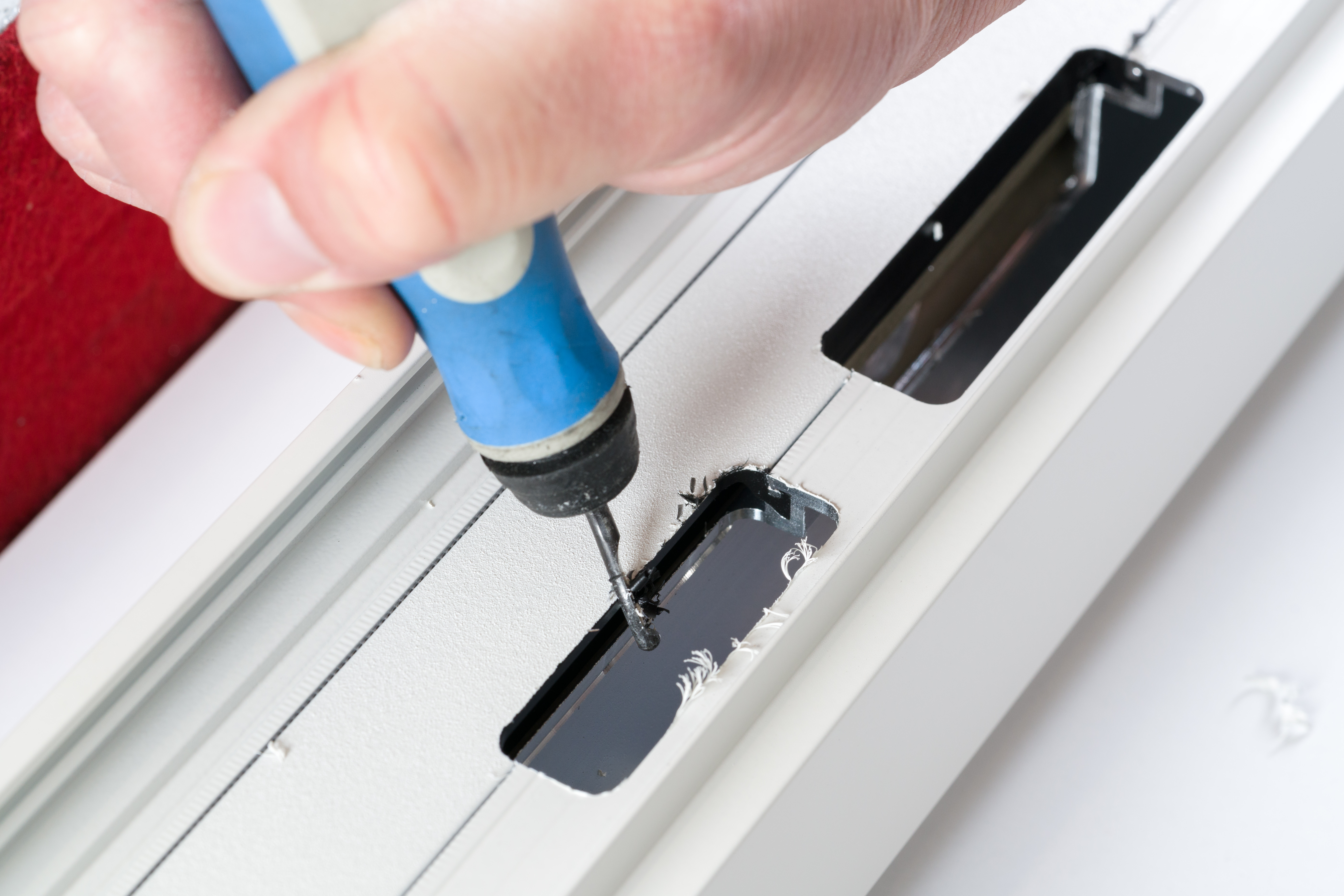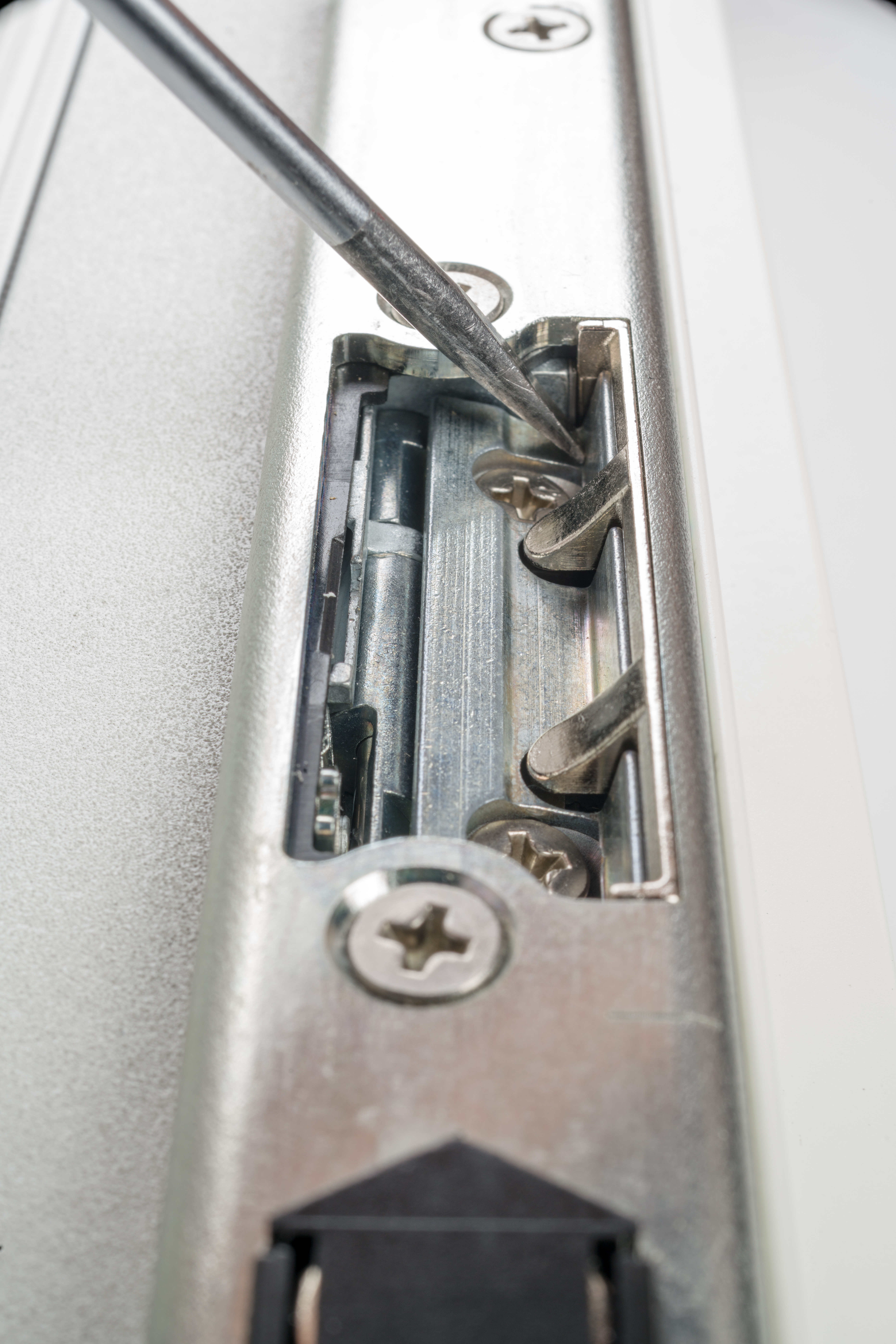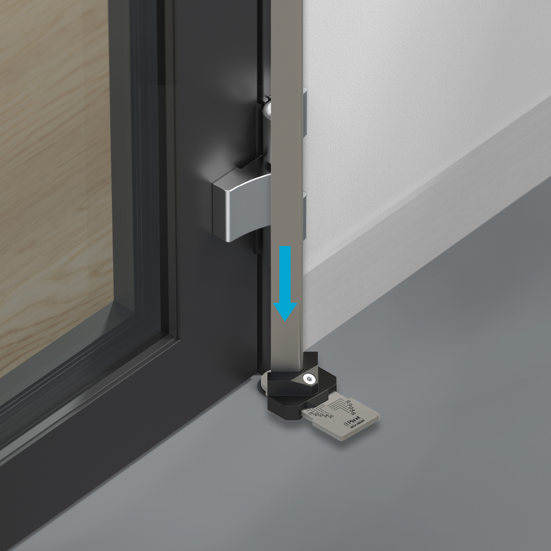 Die innovative schraubenlose Befestigungstechnologie ermöglicht ein einfaches und zeitsparendes Aufstecken des Profils zwischen den Bändern der Tür.