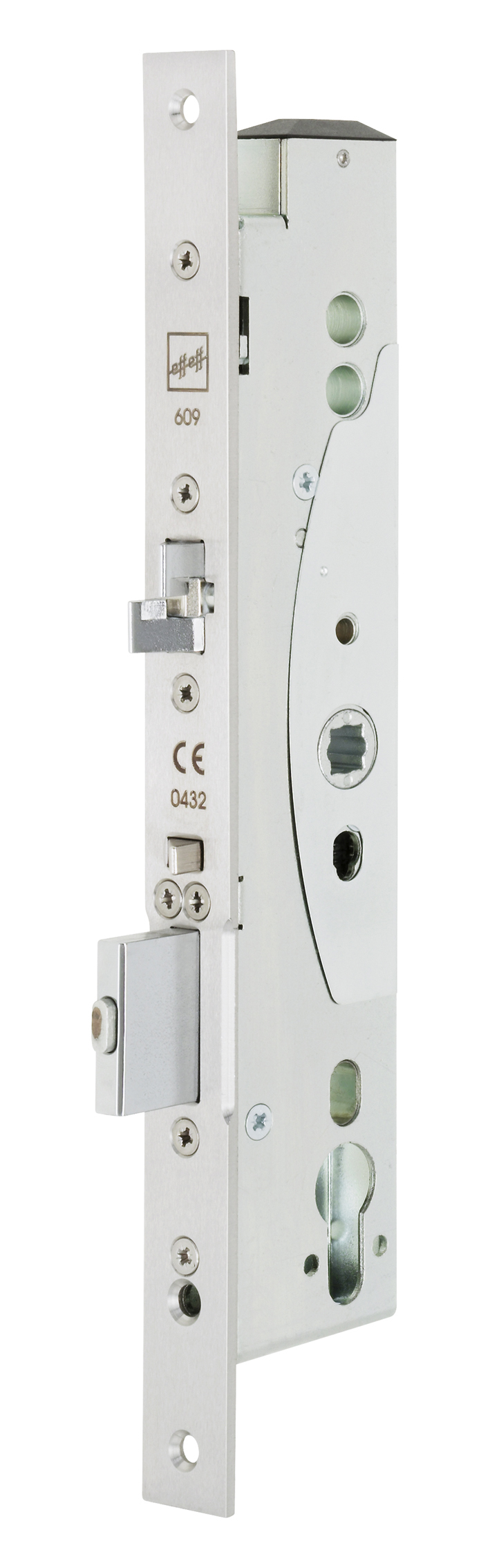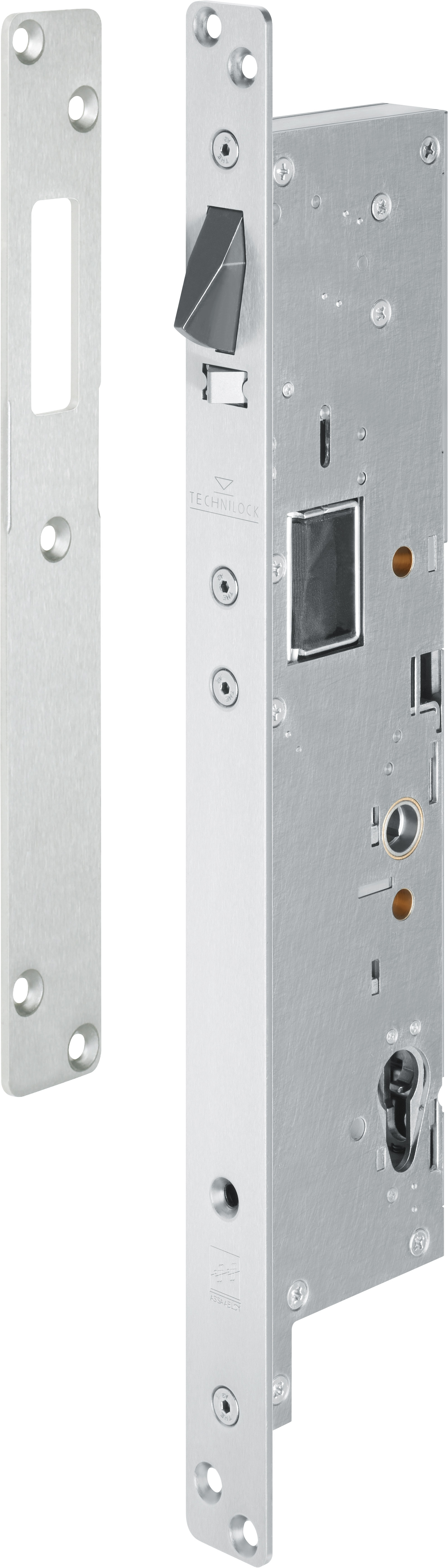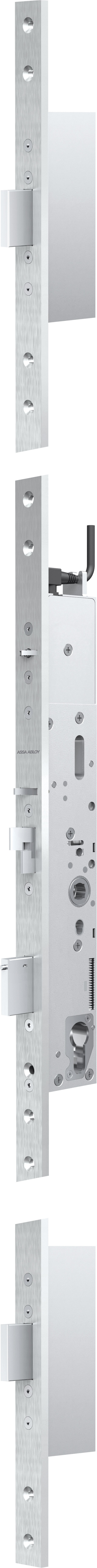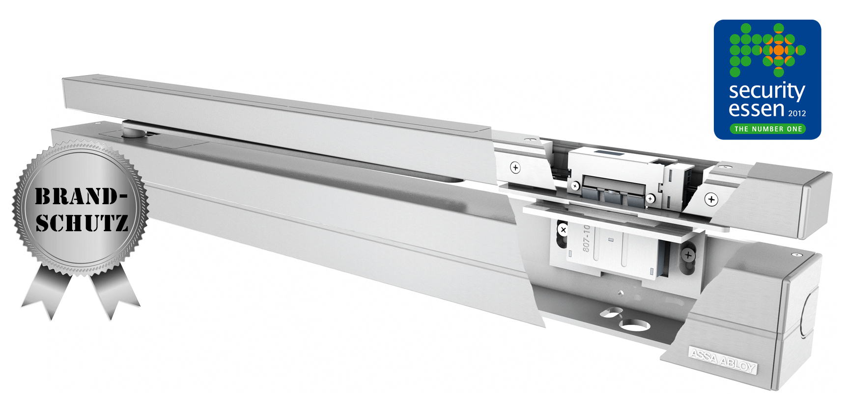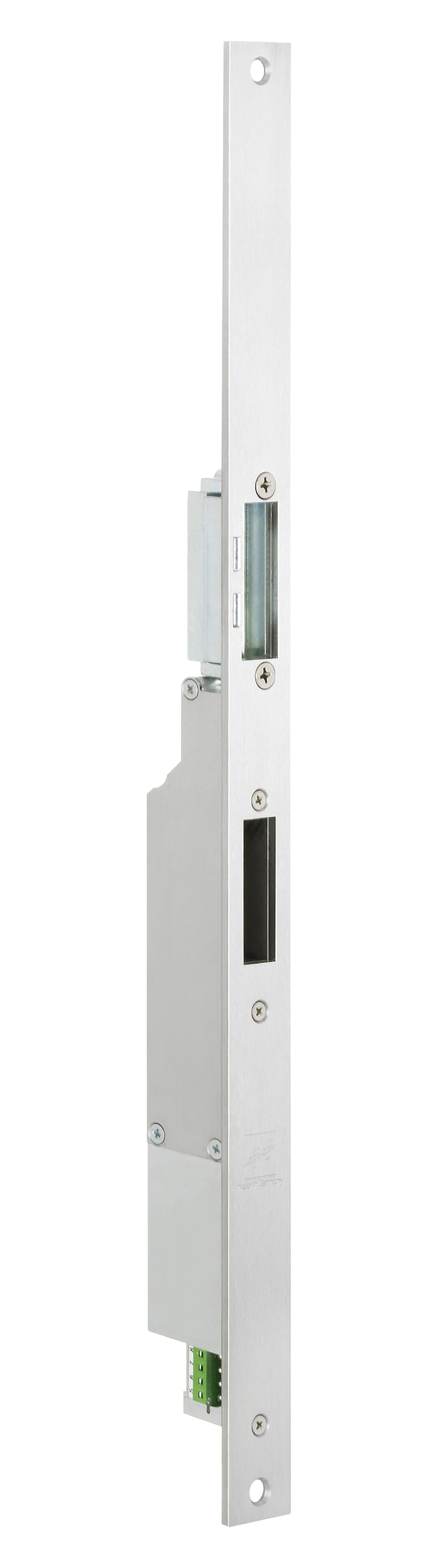 Der MEDIATOR ist geballte Power – ein selbstverriegelndes Fluchttürschloss (AA_Schloss) kombiniert mit einem elektrischen effeff-Lineartüröffner (AA_Lineartüröffner)
