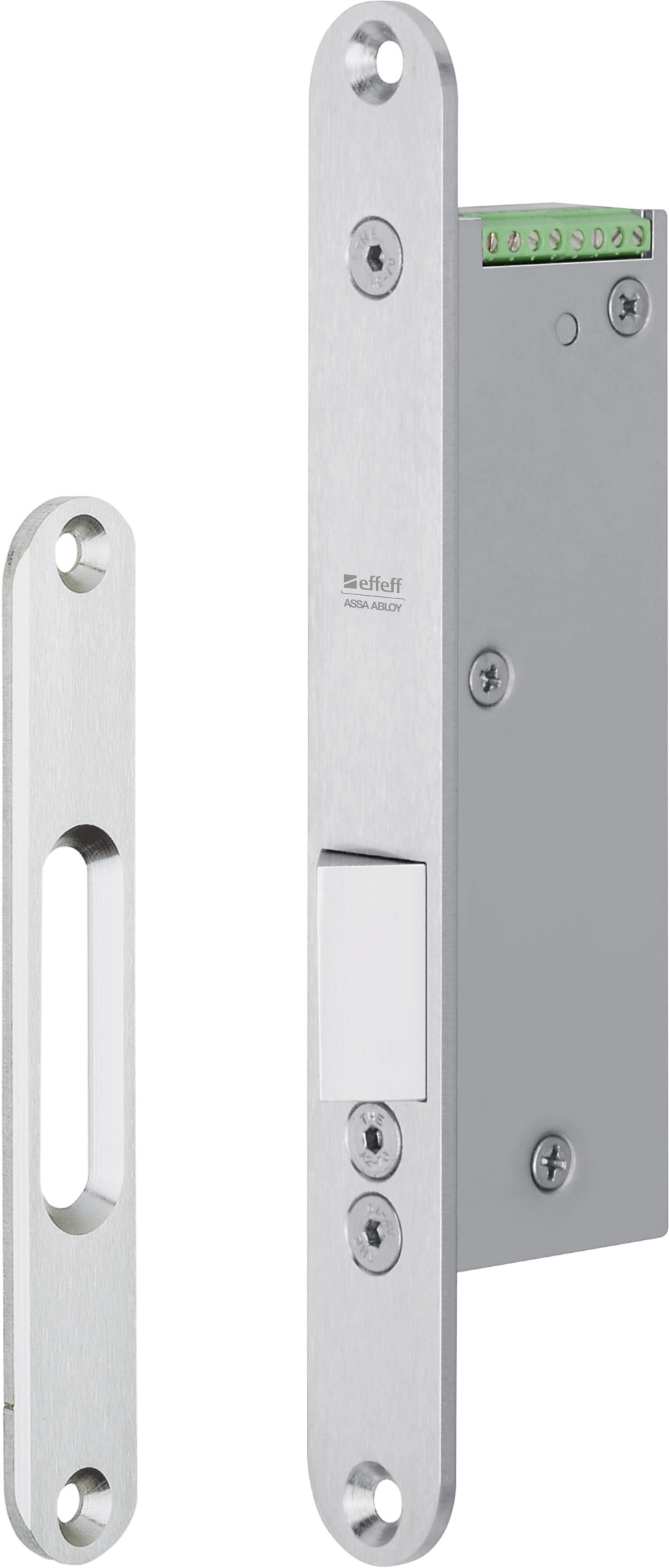 Der schlagsichere effeff-Technilockriegel L4 für Hochsicherheitsbereiche gewährleistet bei einer Vorlast von 80 N immer eine zuverlässige Entriegelung. Dadurch sind auch Anwendungen mit Drehtürantrieben problemlos realisierbar.