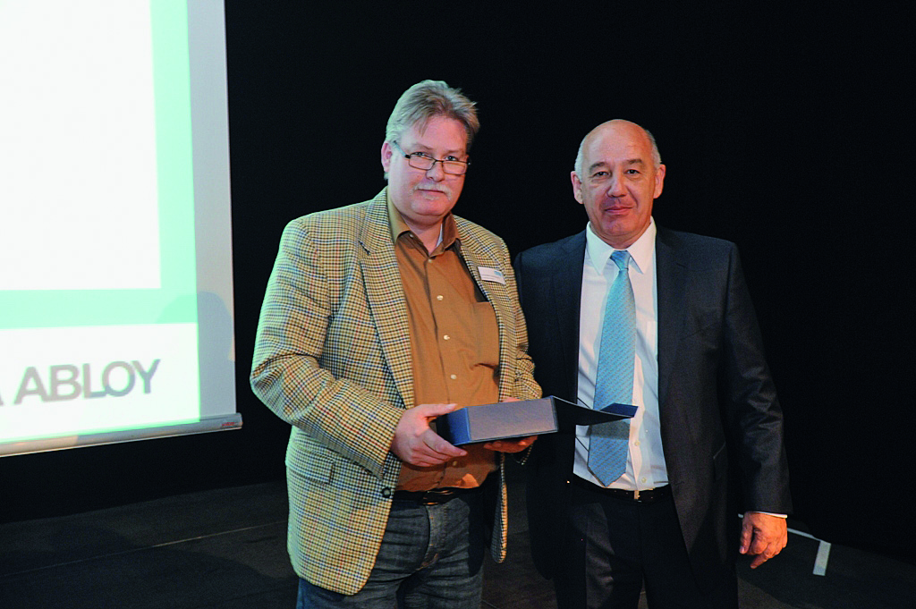 Dragoljub Cvjetinovic (links) bei der Preisverleihung zusammen mit Andreas Waidelich von der Firma Häfele GmbH & Co KG
