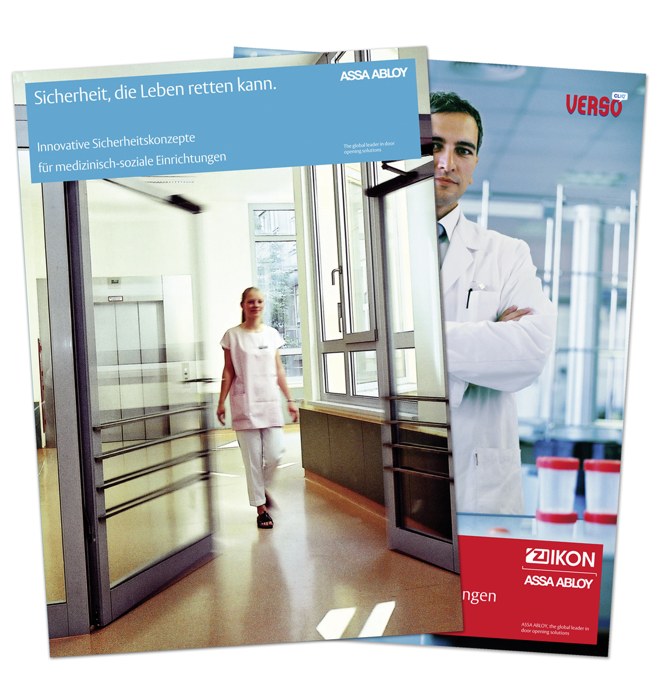 In den Broschüren "Sicherheit, die Leben retten kann. Innovative Sicherheitskonzepte für medizinisch-soziale Einrichtungen" und "VERSO CLIQ von IKON
