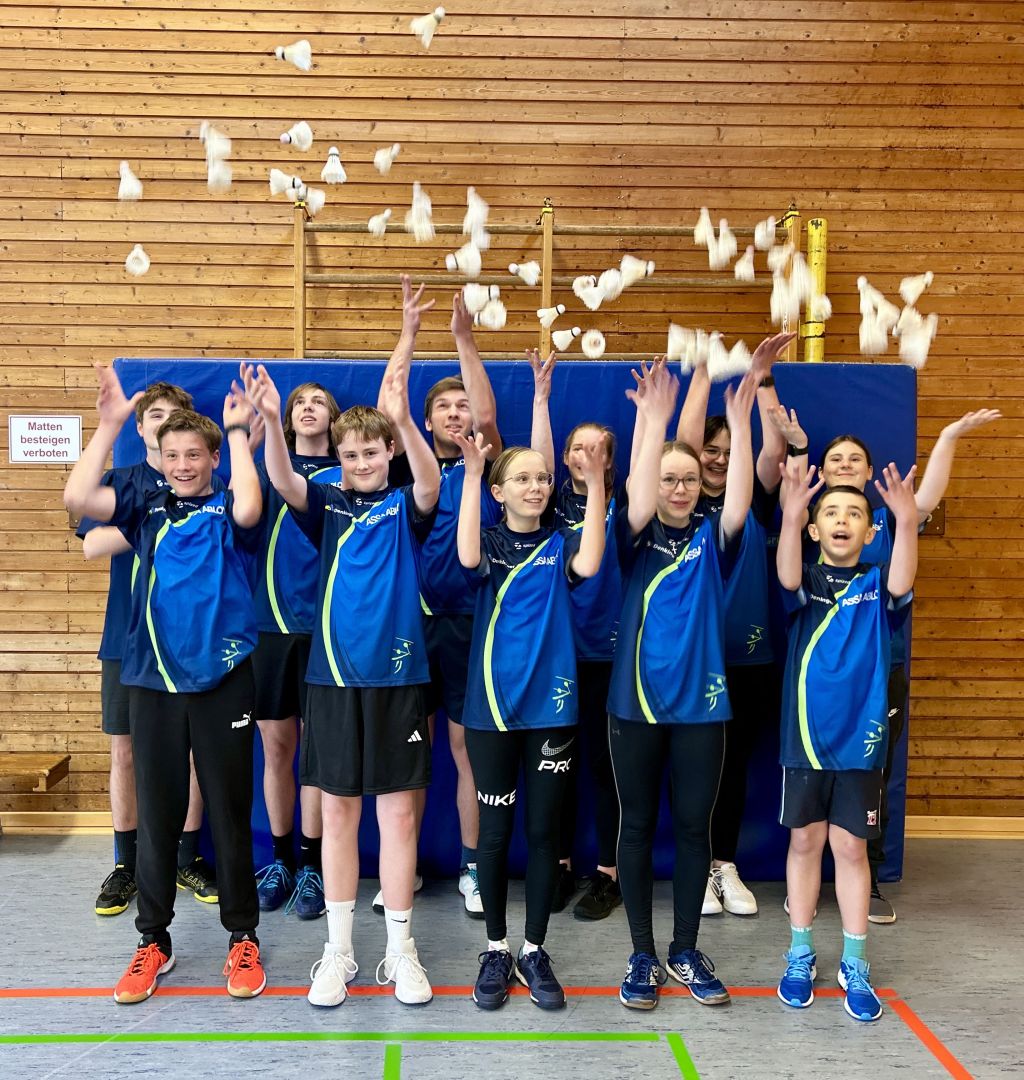 Da Jugendteam des BSV Badmintonsportverein Jungingen e. V. in seinen neuen Trikots, die von ASSA ABLOY gesponsert wurden.