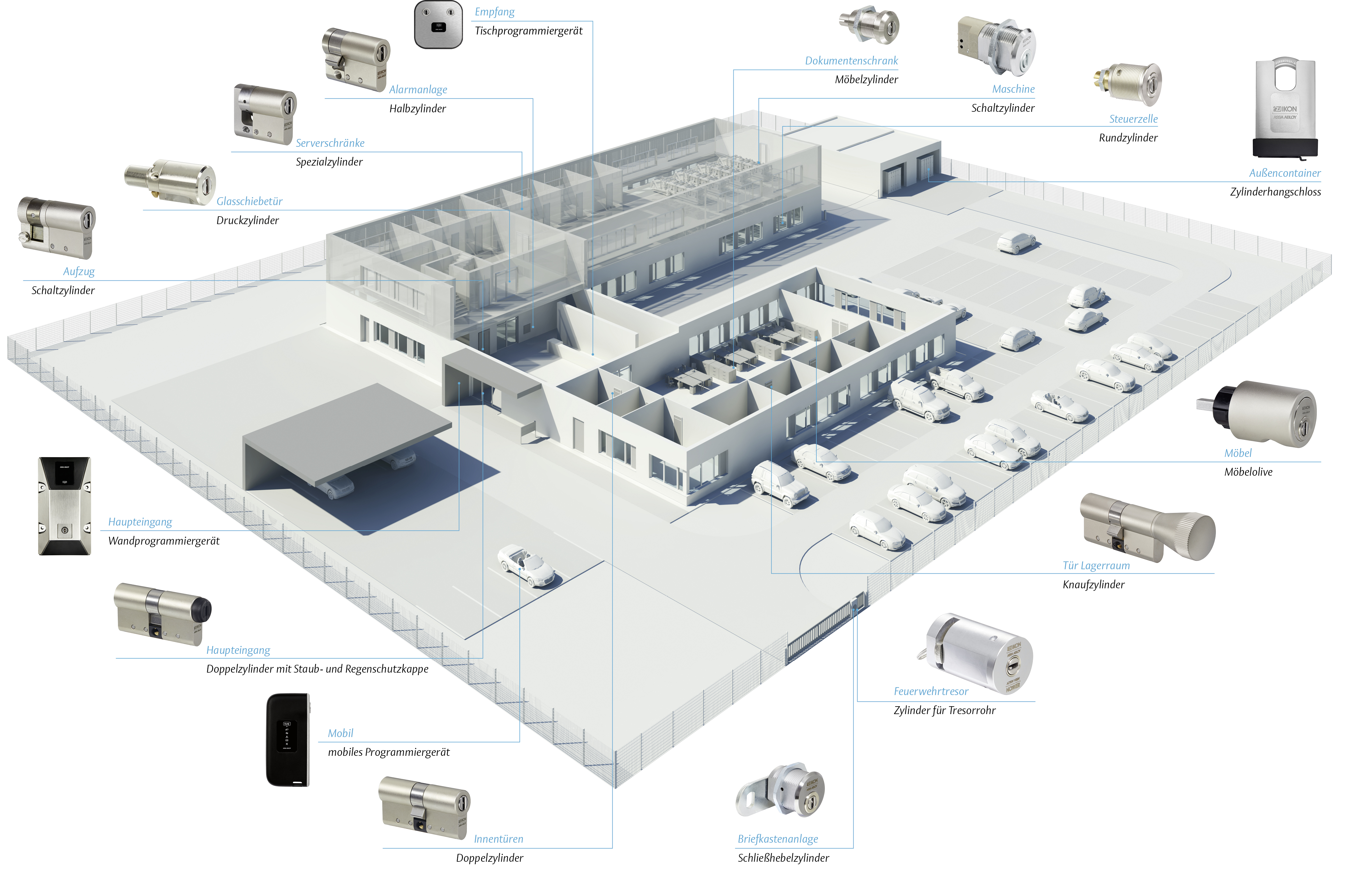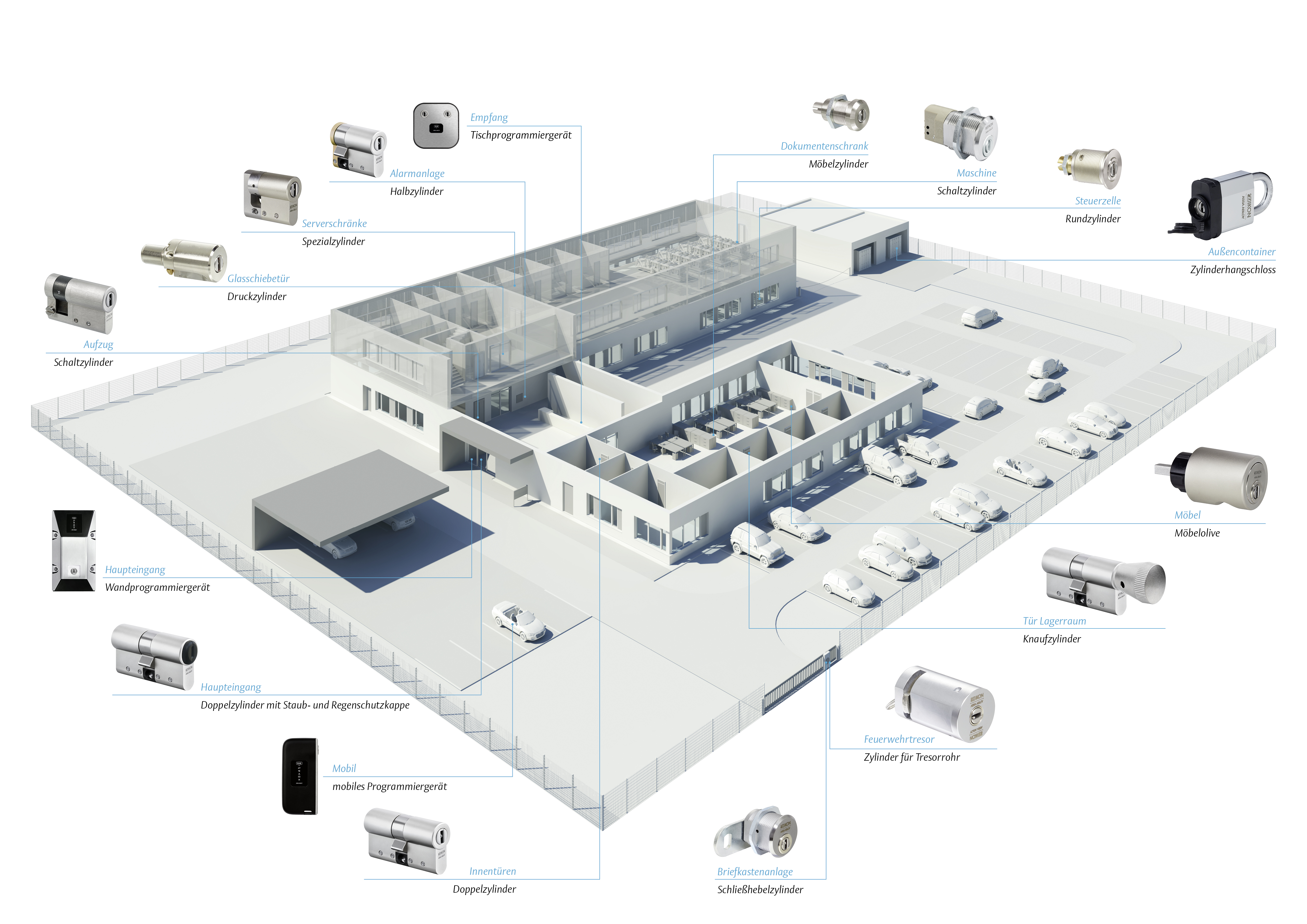 Die CLIQ®-Technologie eignet sich für kleinere Betriebe ebenso wie für Schließlösungen mit vielen tausend Zylindern. Mit über 60 verfügbaren Zylindern und Bauformen bietet das Schließsystem passgenaue und einfach nachrüstbare Lösungen vom Einfahrtstor eines Firmengeländes über die Briefkastenanlage und den Fahrstuhl bis zum Aktenschrank