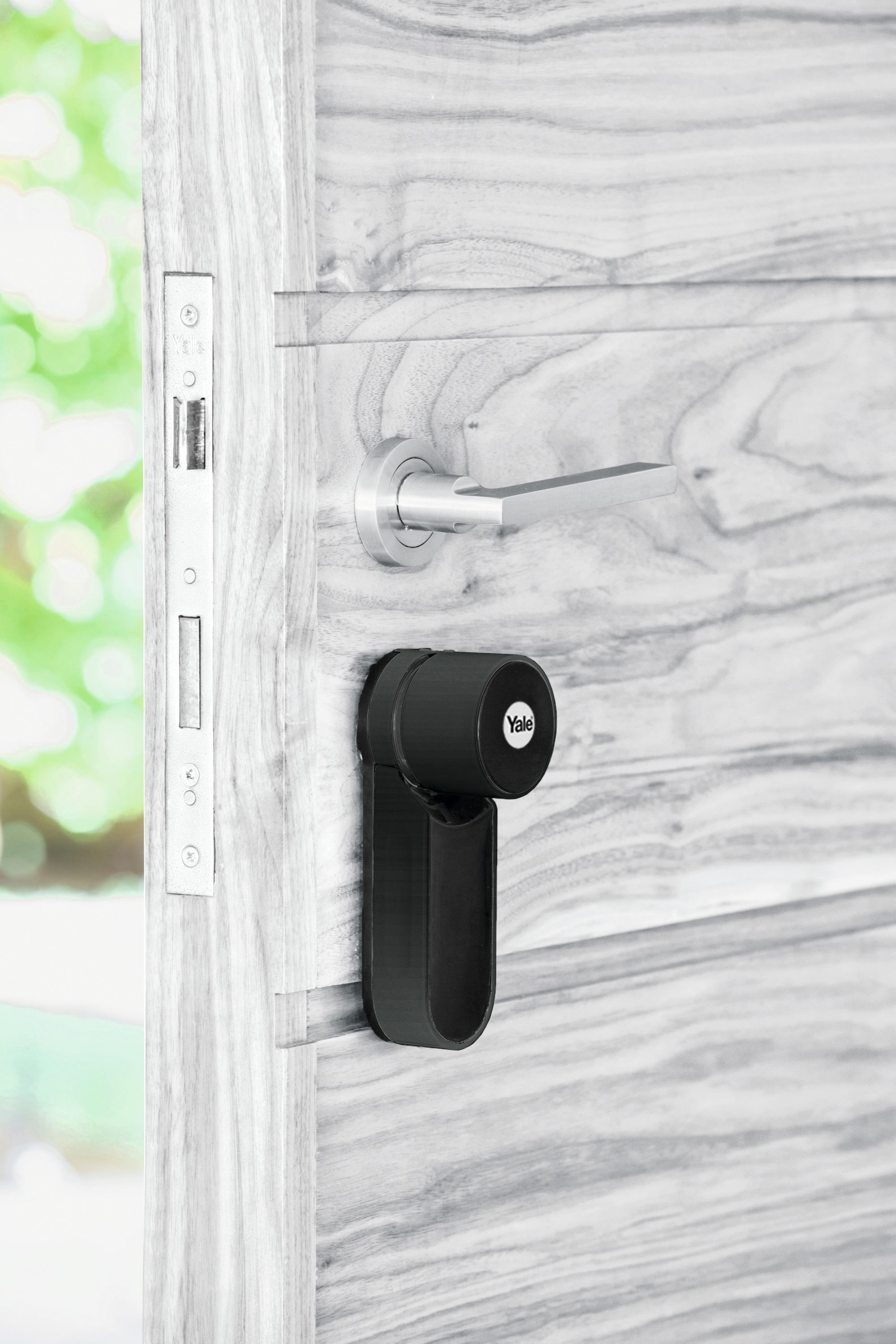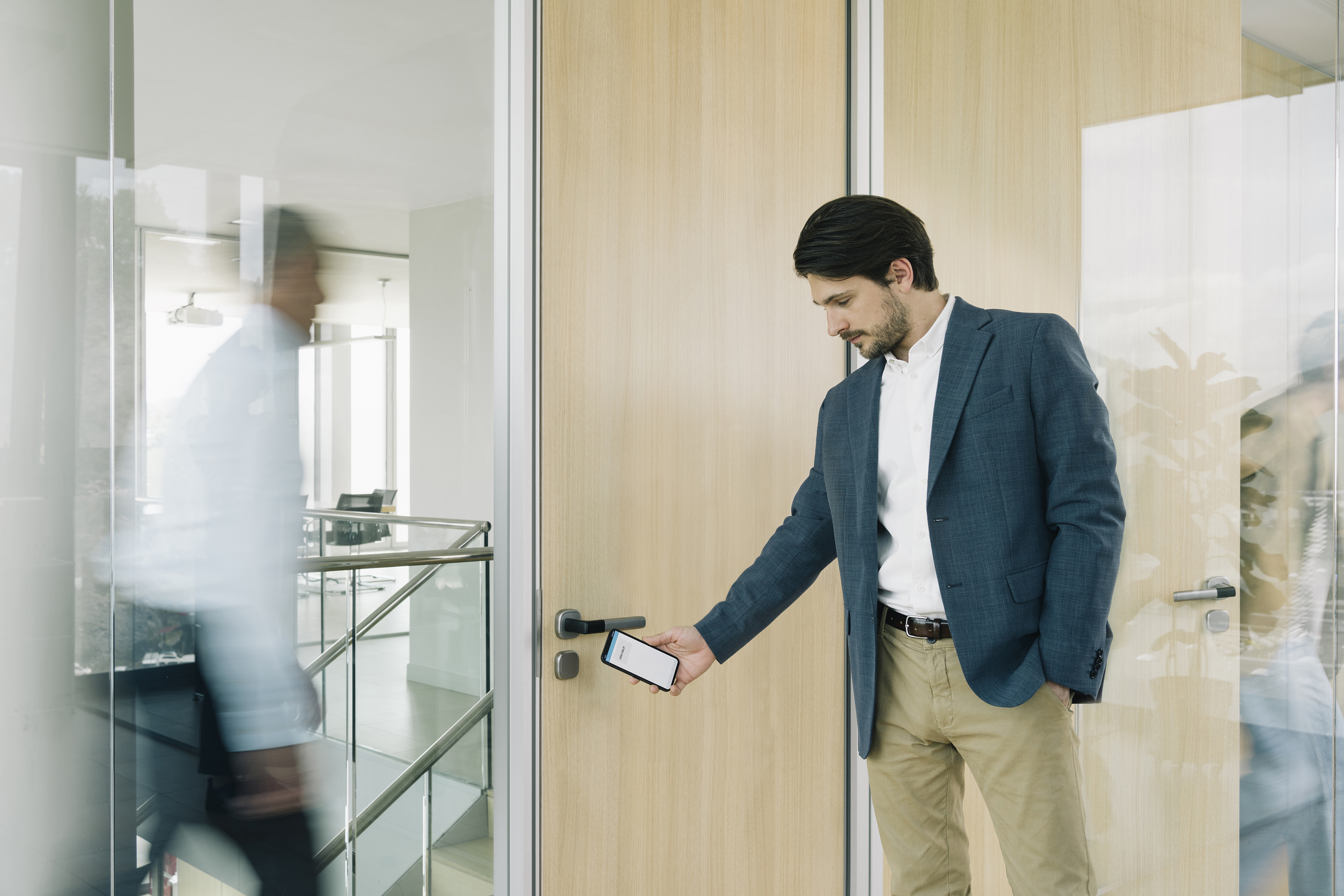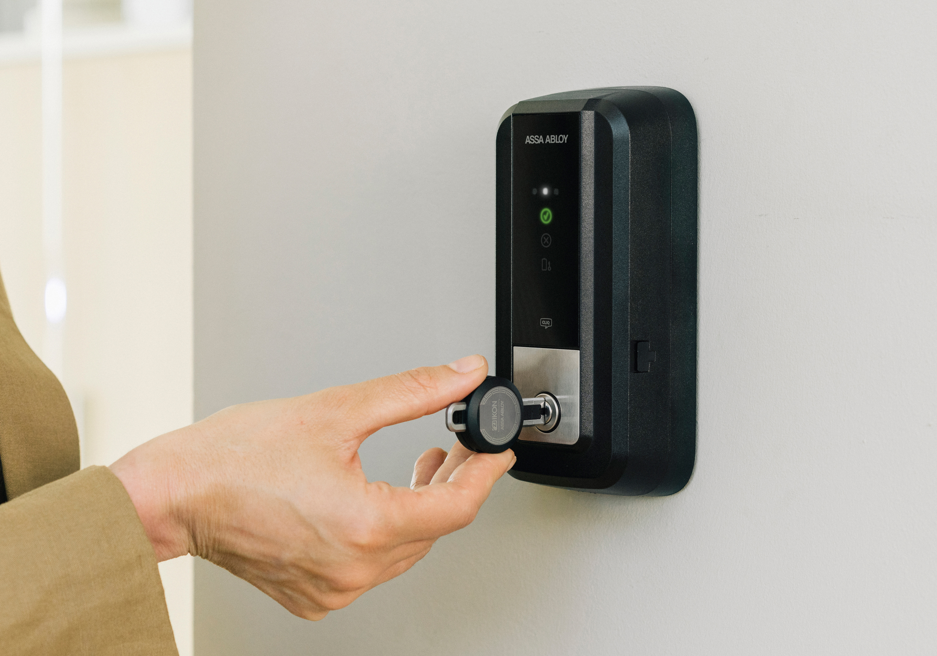 Der neue Aperio® H100 in Schwarz kombiniert elegantes Design mit leistungsfähiger digitaler Zutrittskontrolle für moderne Innenräume.