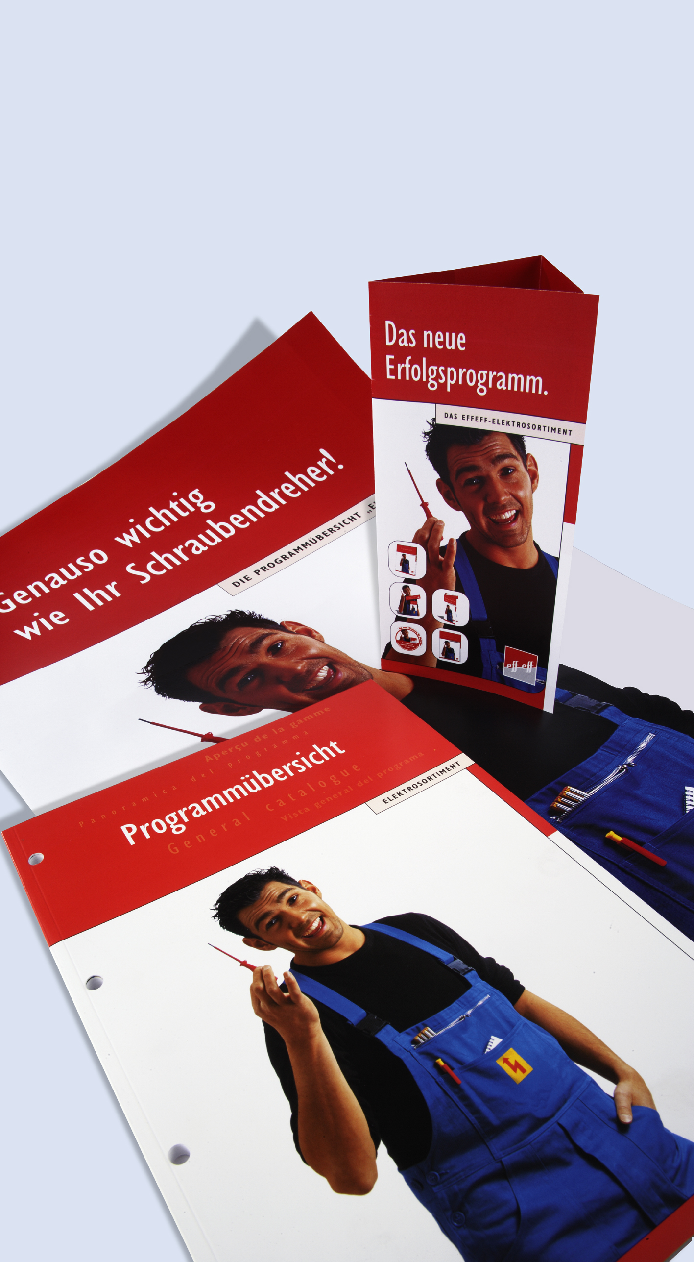 Für die Vermarktung des Katalogs stellt ASSA ABLOY Sicherheitstechnik den Großhändlern werbewirksame Verkaufshilfen wie Info-Flyer mit Bestellmöglichkeiten oder zugkräftige DIN A2 Plakate (Bild), aber auch dekorative Theken-Displays zur Verfügung.
