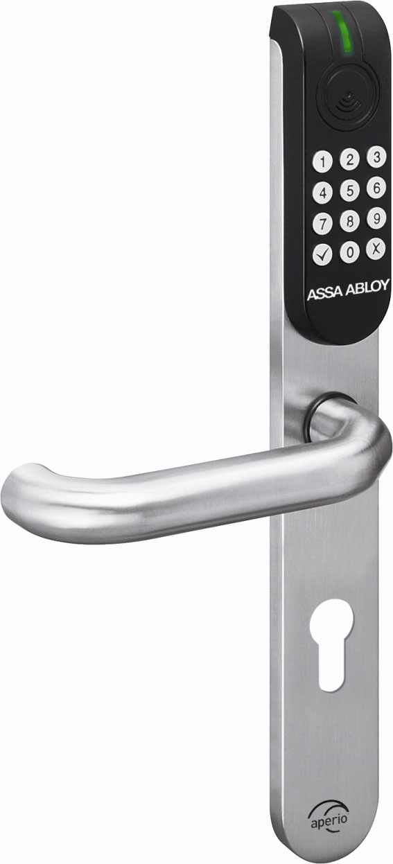 Der neue elektronische Aperio-Beschlag von effeff. Mit der innovativen Technologie können Türen drahtlos - und damit auf einfache und preisgünstige Art - in bestehende Zutrittskontrollsysteme integriert werden