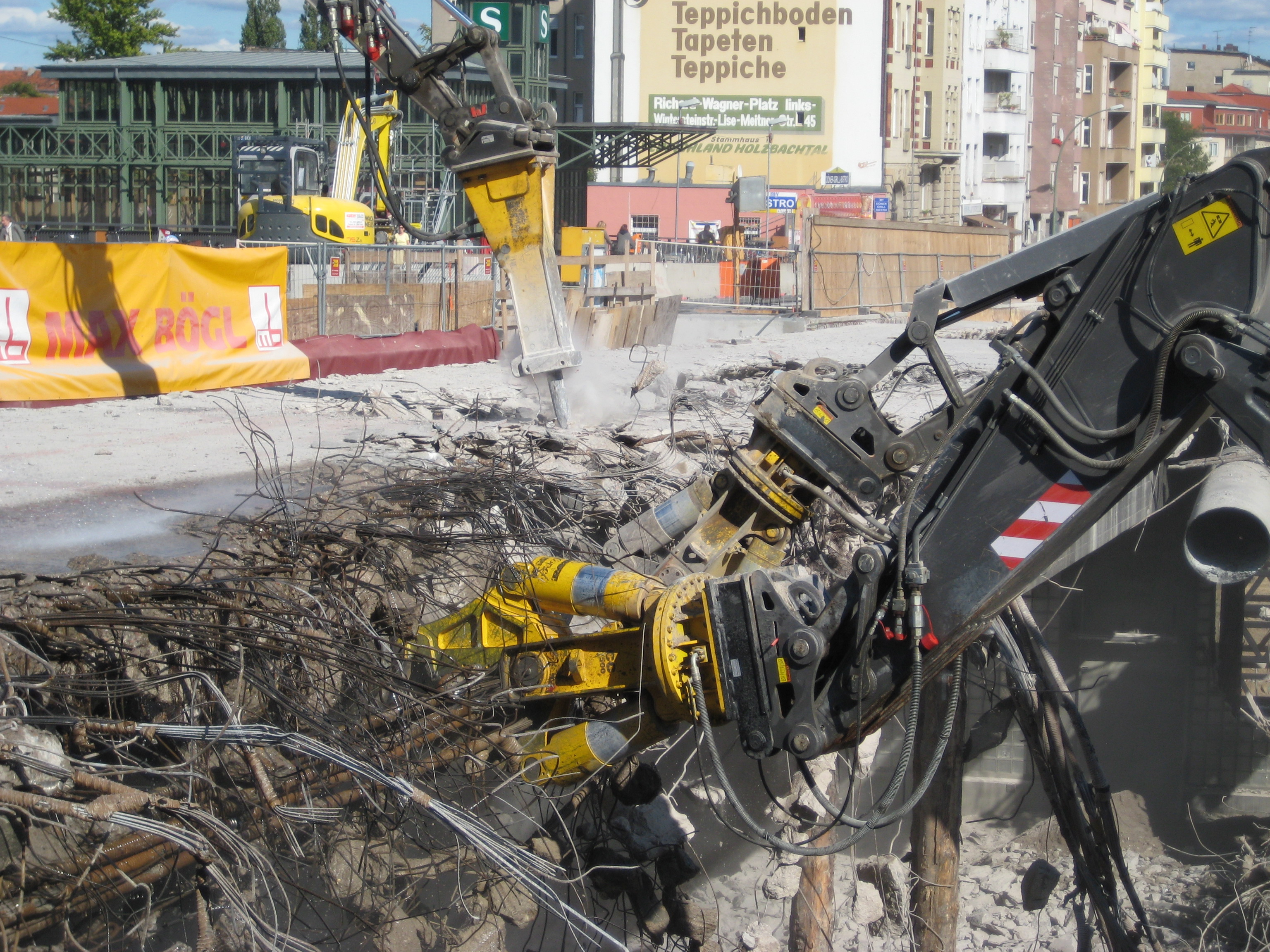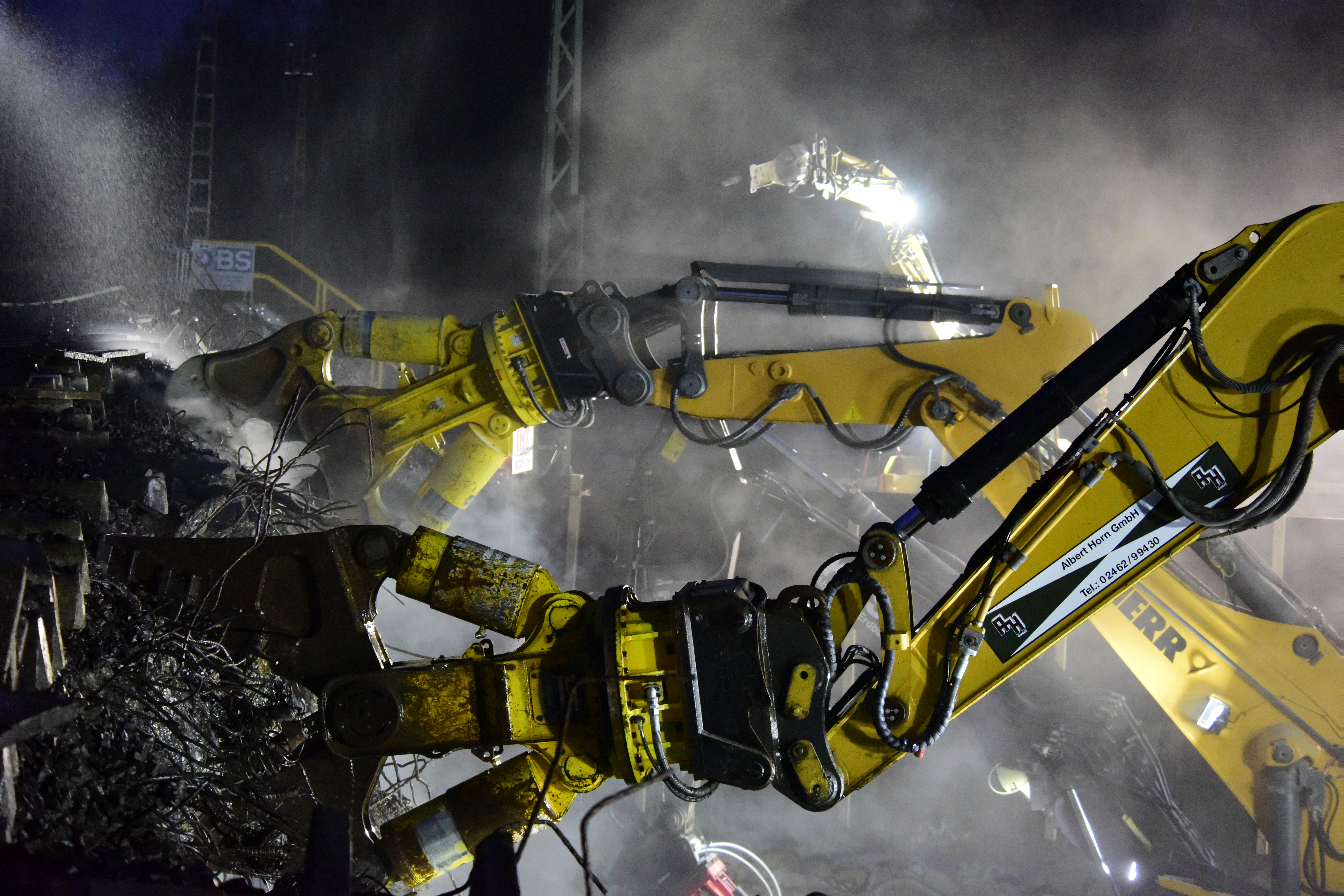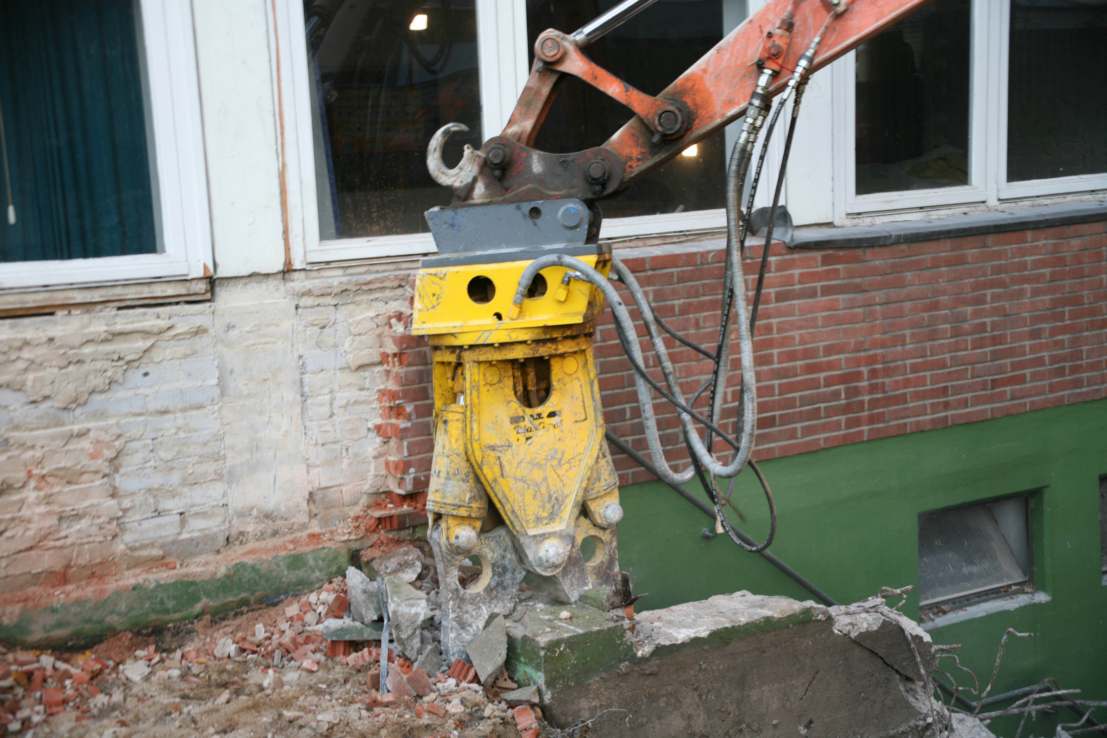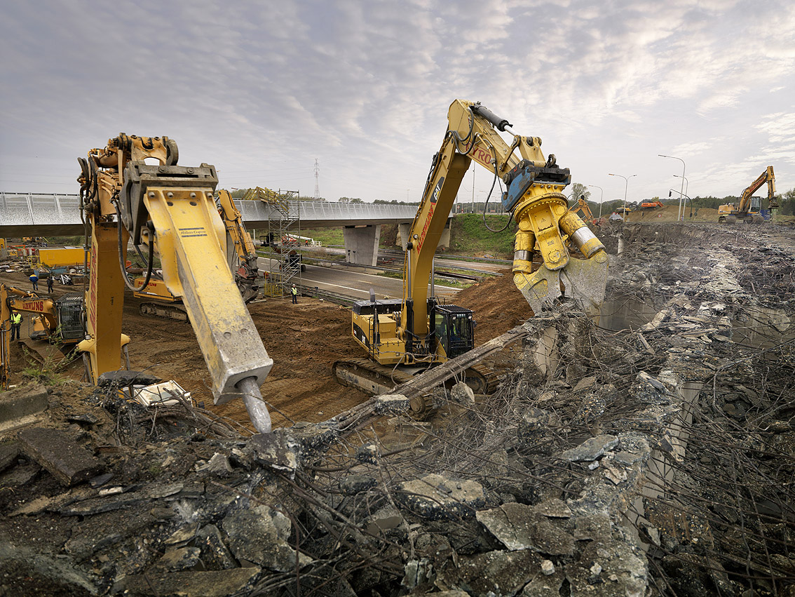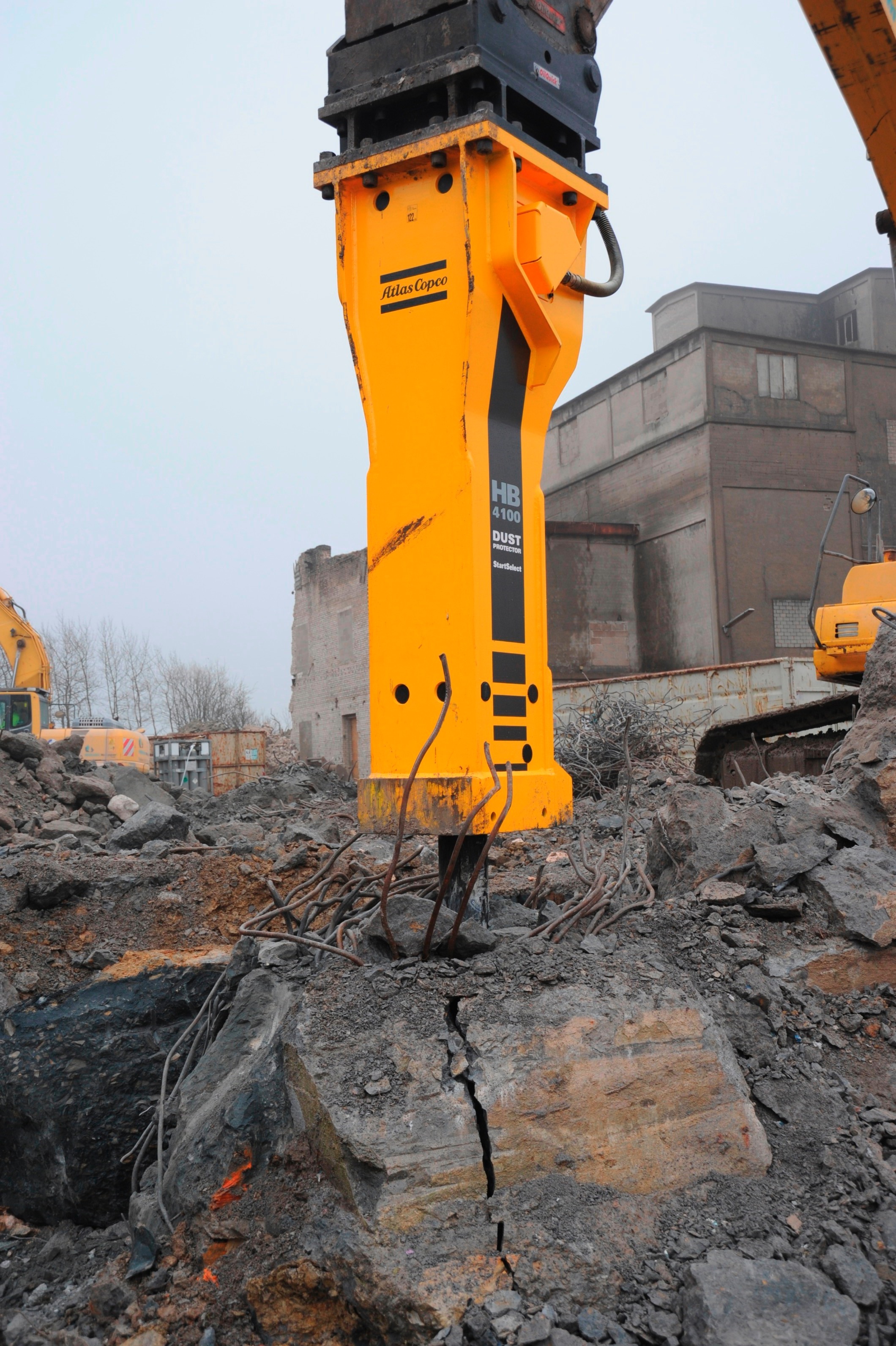 Acht schwere Hydraulik-Anbaugeräte von Atlas Copco bei Großabbruch in Rutesheim