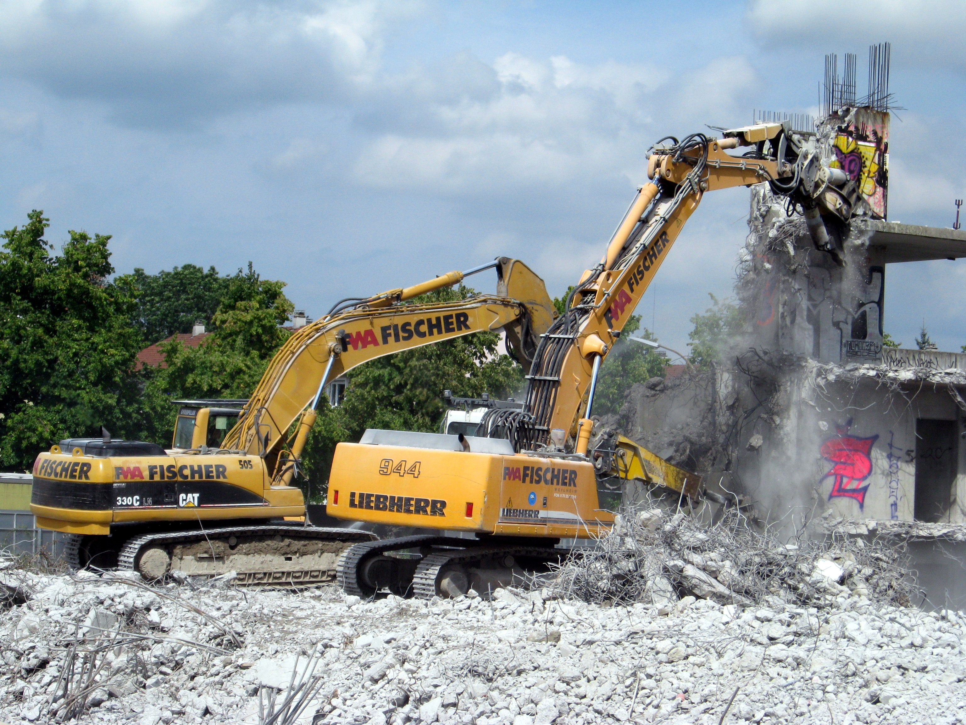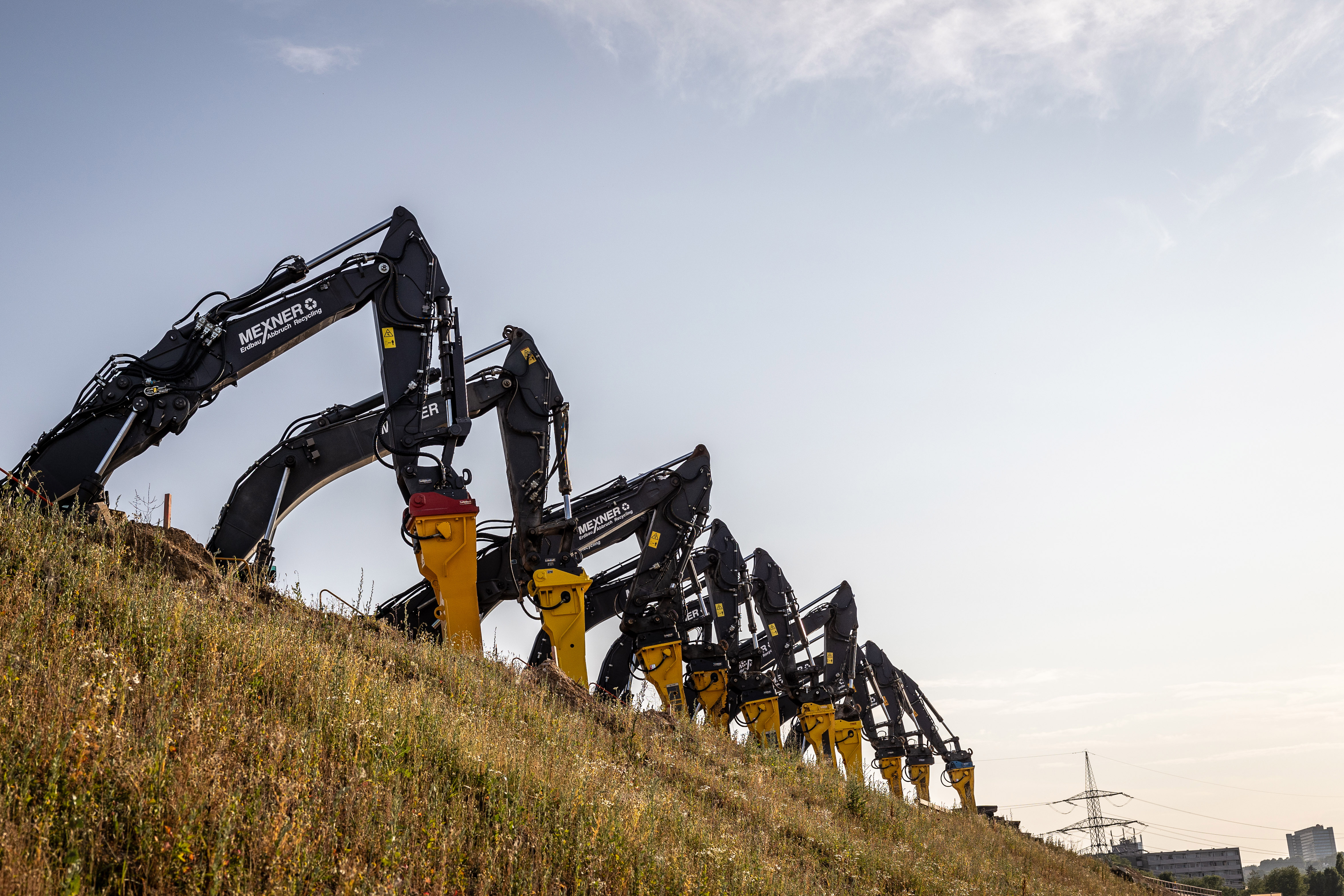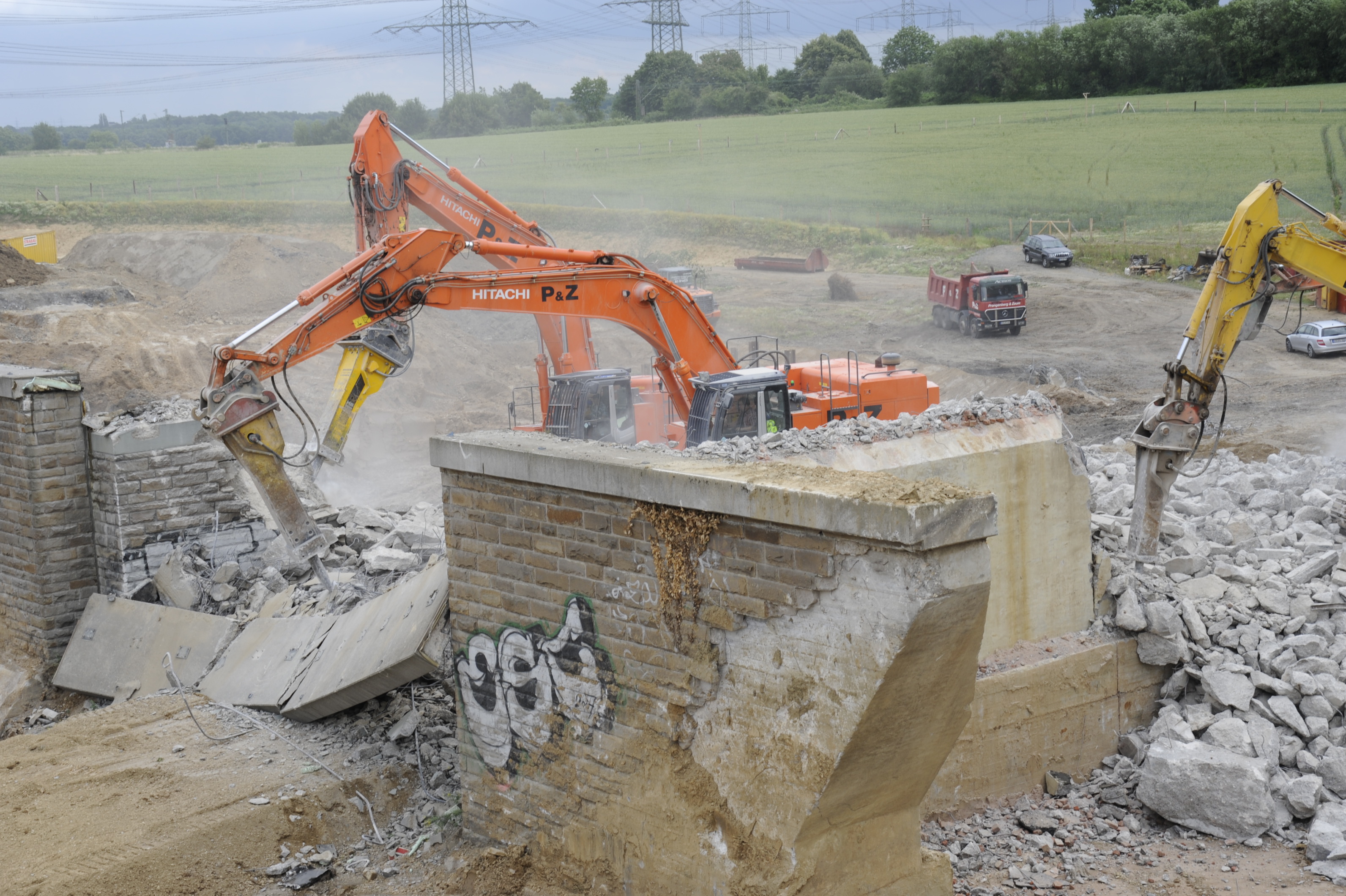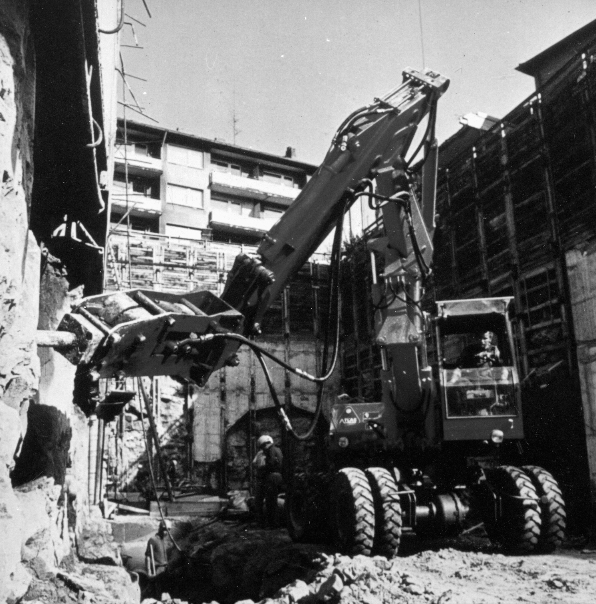 Acht schwere Hydraulik-Anbaugeräte von Atlas Copco bei Großabbruch in Rutesheim