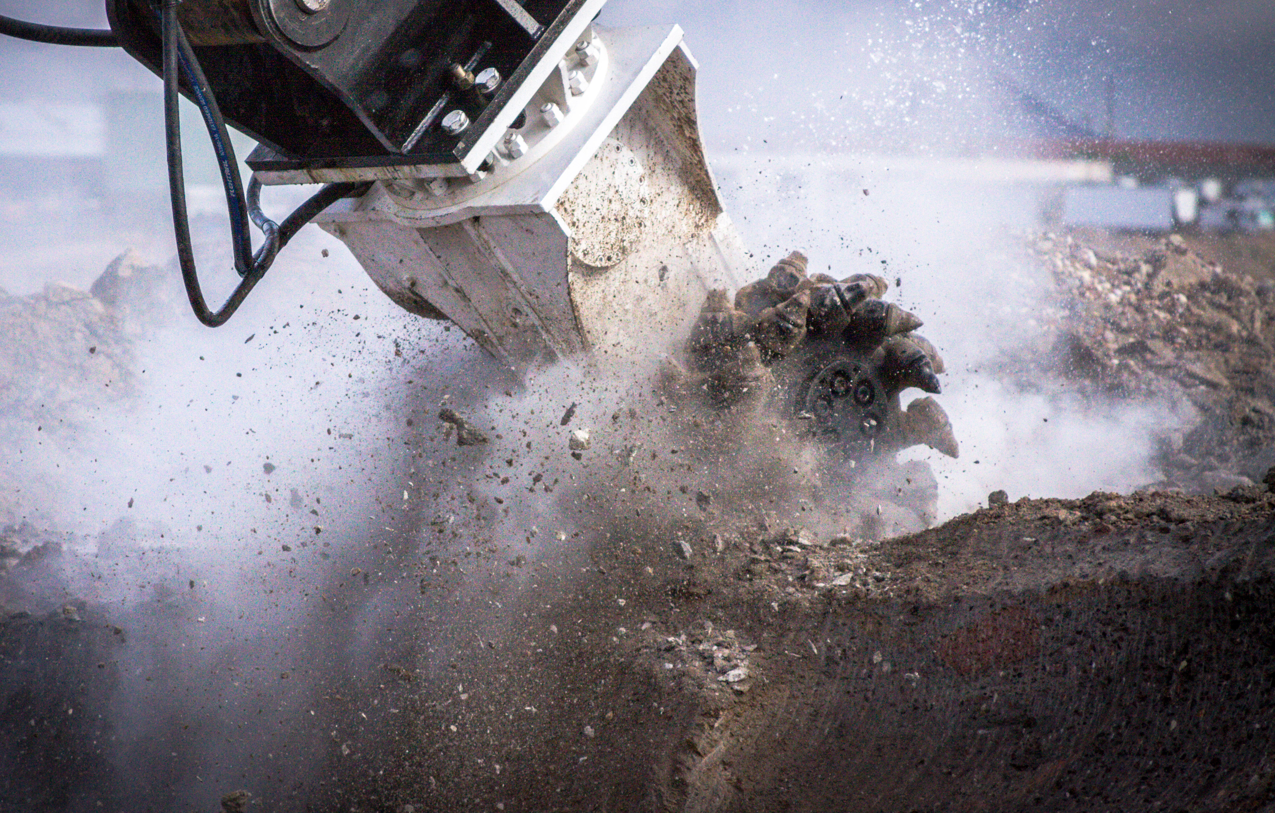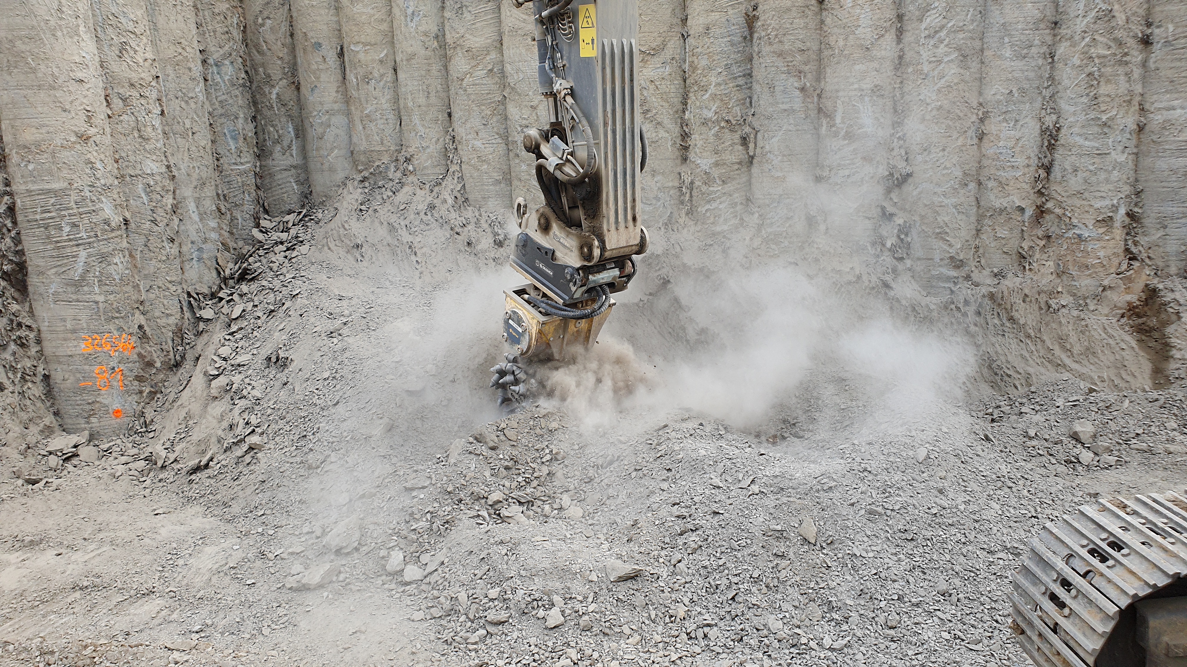 Die ersten Schläge des Epiroc HB 5800 auf dem Gelände des Kraftwerks Scholven