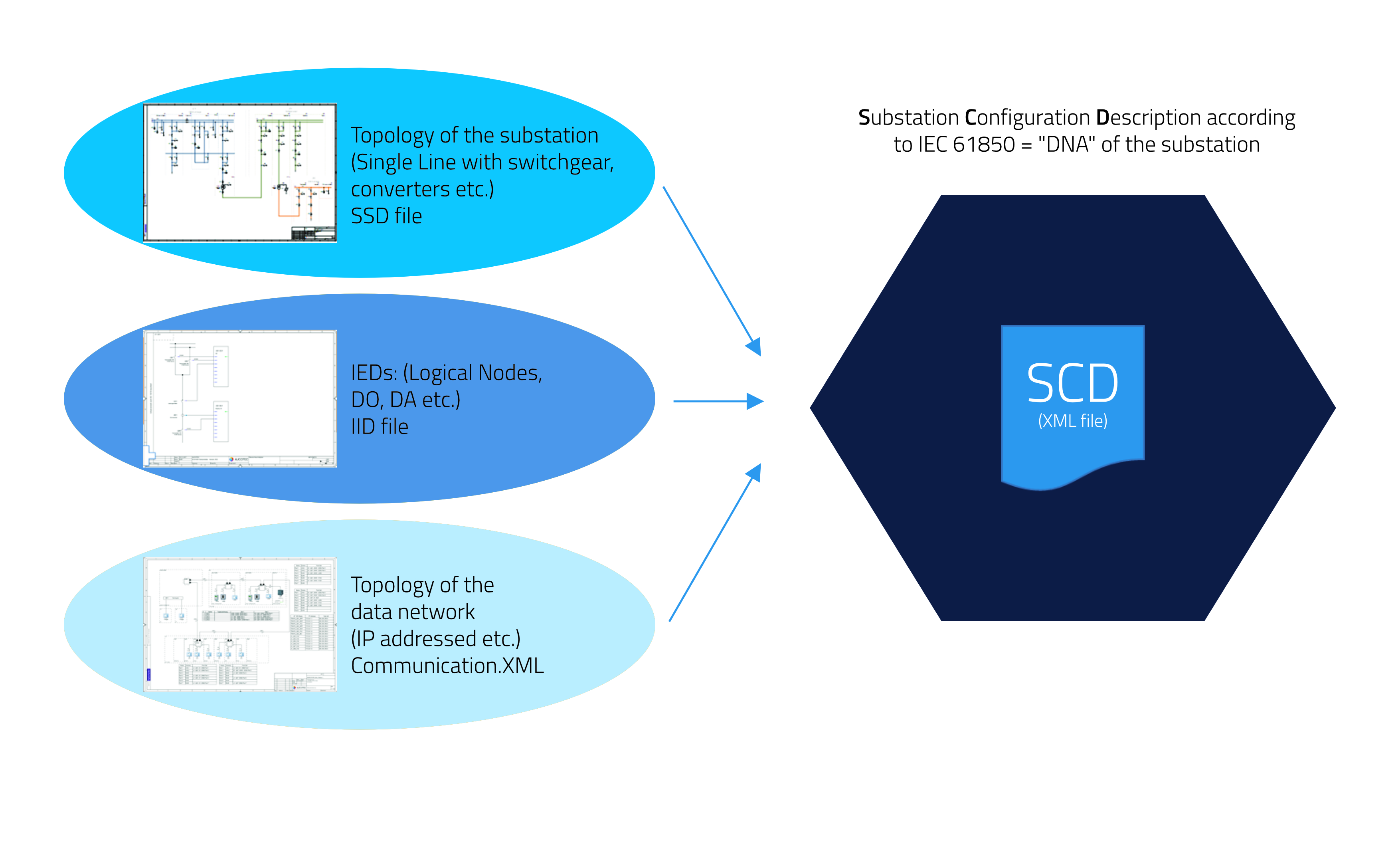 EB automatically generates the standard-compliant SCD file, which summarizes all information about the substation’s object model from topology to network diagram.