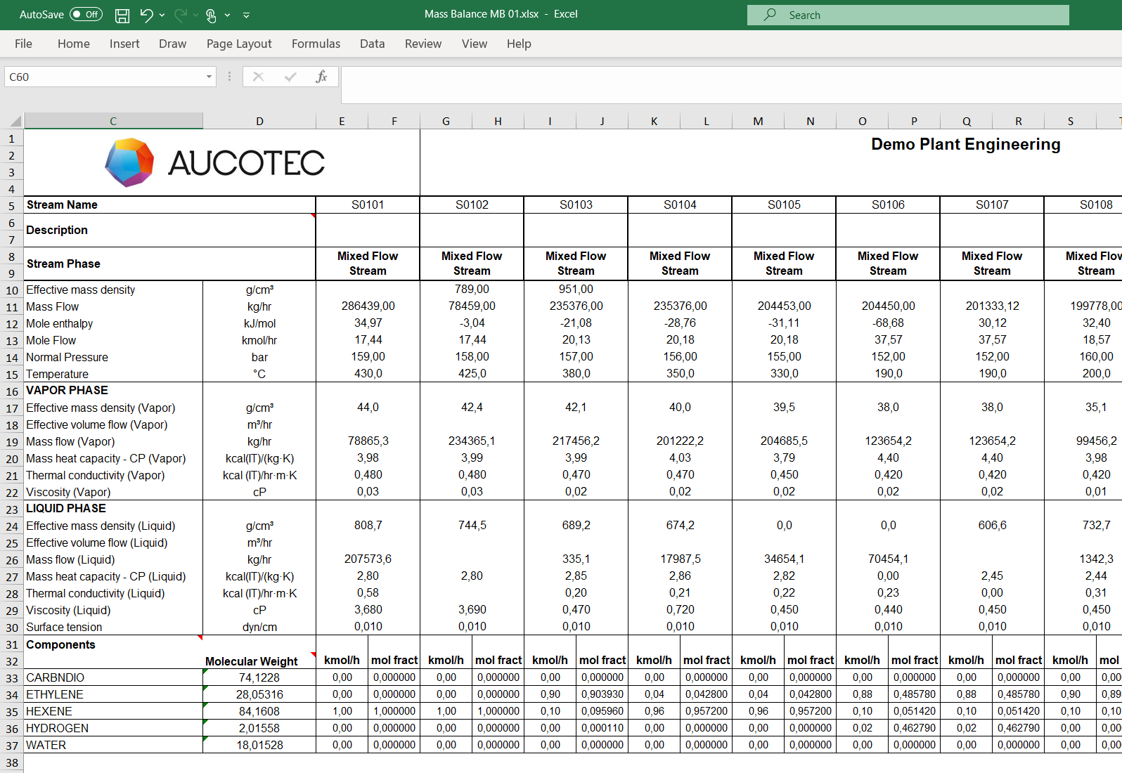 Automatic datasheets save manual work and transmission errors: With EB, simulation results end up directly in suitable datasheet templates. (Example: Results of a heat & material balance calculation) Automatically generated data sheet from a heat & material balance calculation: This way EB saves manual work and transmission errors (Image: AUCOTEC AG)