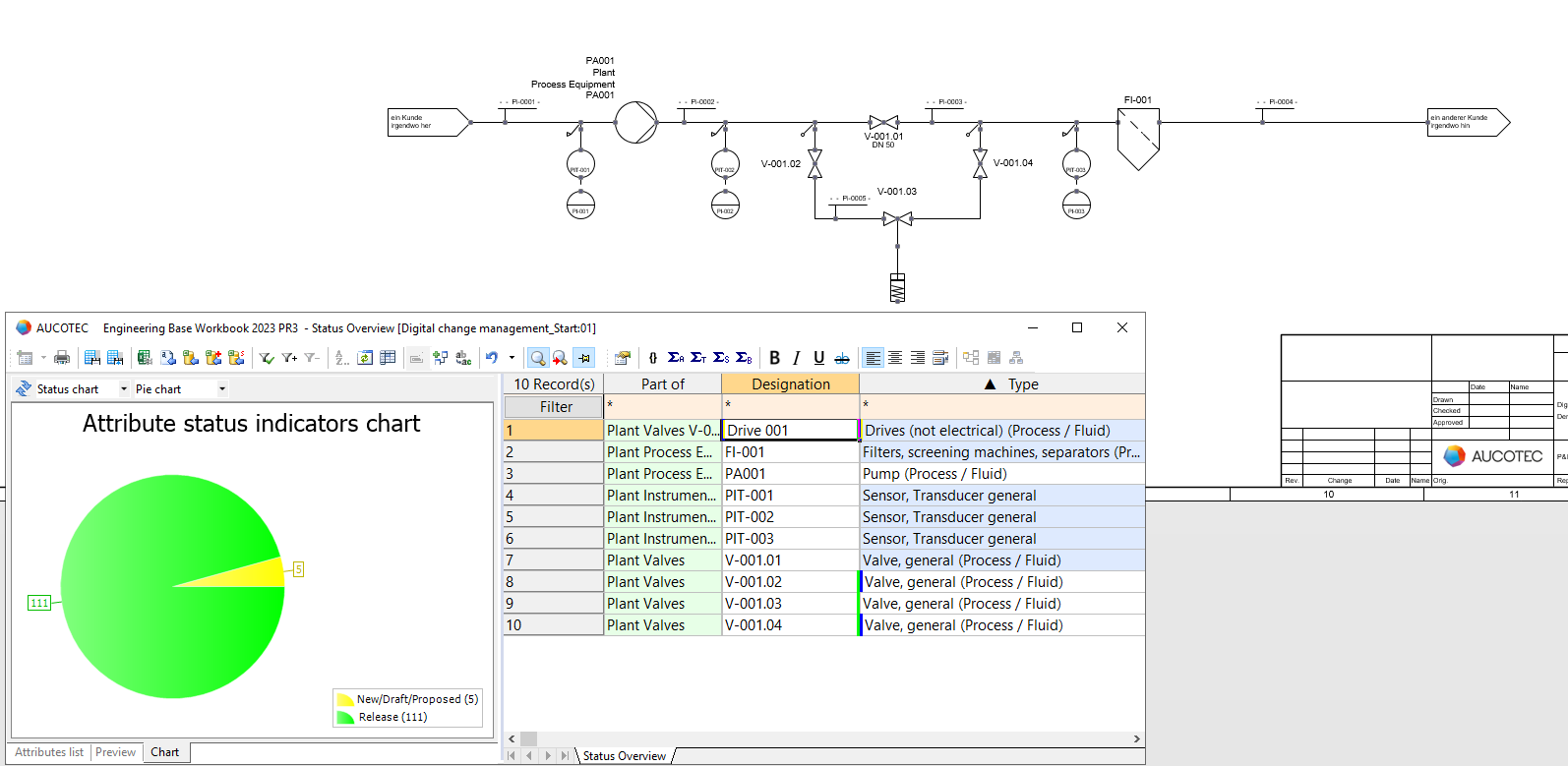 Ready for Revision? Only when the states of all attributes are released is the P&ID really ready for revision. (Image: AUCOTEC AG)