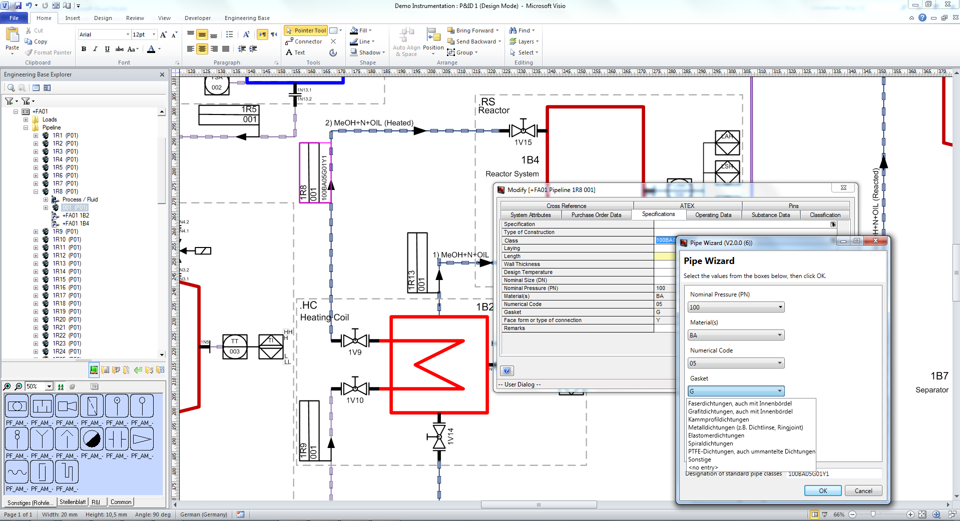 Wizard for pipe class definition in Engineering Base, Image (Aucotec)