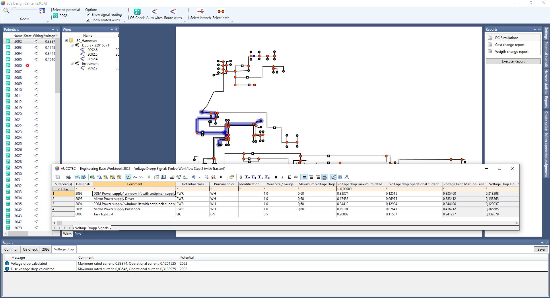 Routed potentials and wires are marked in the EDS Design Center for simulation scenarios / Image: AUCOTEC AG