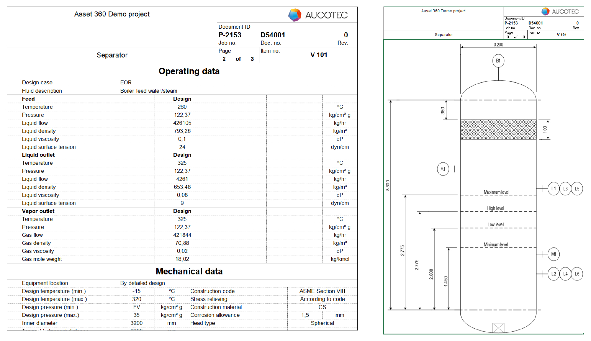 The new data sheets automatically merge all information about an asset, including accessories and sub-systems. (Picture (combines 2 sheet sections): AUCOTEC AG)
