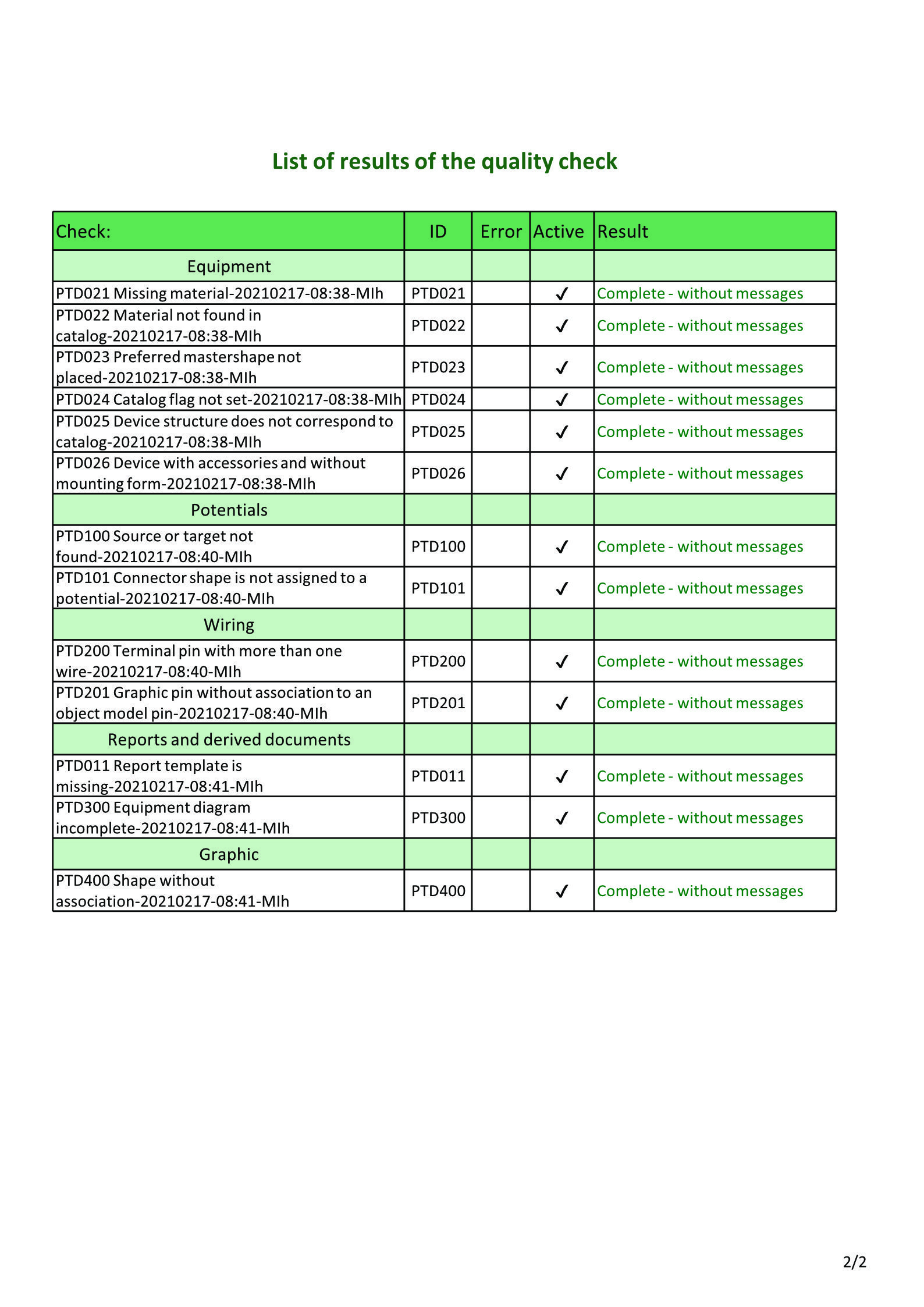 In der Planung prüfen Engineering-Experten regelmäßig, ob alles korrekt ist. Auch zugelieferte Dokumentationen werden gecheckt. Die selbst bei finalen Komplett-Prüfungen meist noch übliche Augenkontrolle bedeutet enormen Zeitaufwand – ohne Garantie auf vollständige Richtigkeit. EB dagegen kann nichts „übersehen“. Dank Objektorientierung und universellem Datenmodell sind alle beteiligten Disziplinen in dem System vereint. Es kennt sämtliche Logiken und Verknüpfungen. Das neue Qualitätsmanagement prüft nicht nur automatisiert auf Unstimmigkeiten oder nicht eingehaltene Vorgaben, es erstellt auch automatisch je Prüfung eine Liste aller Diskrepanzen und beschreibt sie. Direkt aus der Liste lässt sich zum auffälligen Objekt navigieren und der Fehler beheben. Ist alles korrekt, enthält das gelieferte Projekt ein Zertifikat in Form eines Prüfblattes mit grünem Siegel, das die Fehlerfreiheit belegt – auf den ersten Blick sichtbar. Statt Wochen an Arbeit dauert die Prüfung maximal einige Stunden. Zunächst für energietechnische Anlagen entwickelt, ist dieses neue QS-Framework später auch in anderen Branchen einsetzbar.