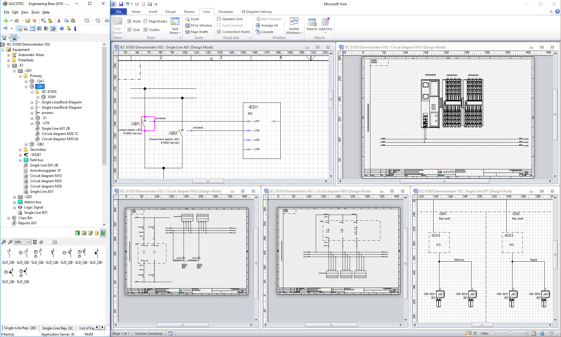 Damit Projektierer nicht mit verschiedenen herstellerspezifischen Tools jonglieren müssen, die jeweils nur eine Systemebene der Stationsautomatisierung abdecken können, hatte sich Aucotec schon vor Jahren mit dem Dortmunder Systemhaus H&S zusammengetan. Deren neutrales Konfigurationswerkzeug SCT (Substation Configuration Tool) auf SCL-Basis wurde jetzt noch deutlich tiefer in Aucotecs datenzentrierte Kooperationsplattform Engineering Base (EB) integriert. Die Kopplung reicht nun bis tief in die Anlagenstruktur. Bisher ließen sich die Informationen zu den Hochspannungsgeräten „nur“ auf Single-Line-Ebene online austauschen.