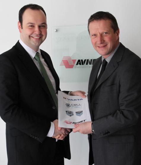 v.l.n.r.: Alex Stapleton, Distribution Manager UK & Ireland, VARTA Microbattery; Tim Parker, Battery Products Business Manager, Avnet Abacus