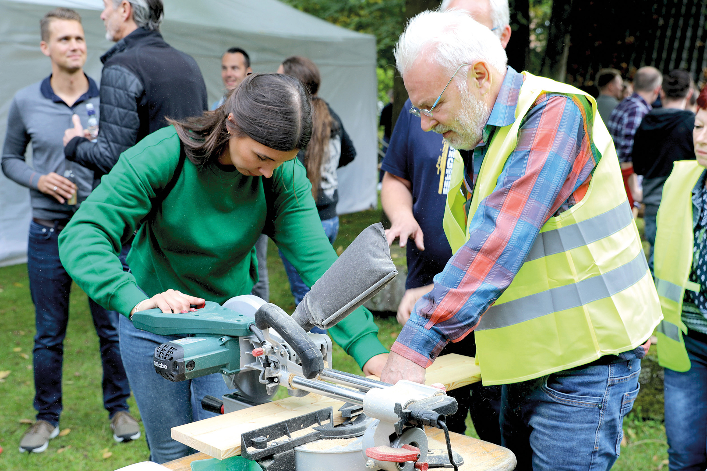 Das ist Maßarbeit! Babtec-Teammitglied Anika beim Bau einer Nisthilfe für Wildbienen.