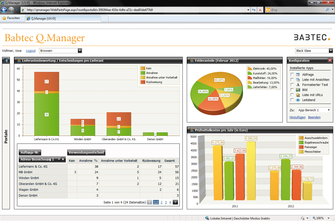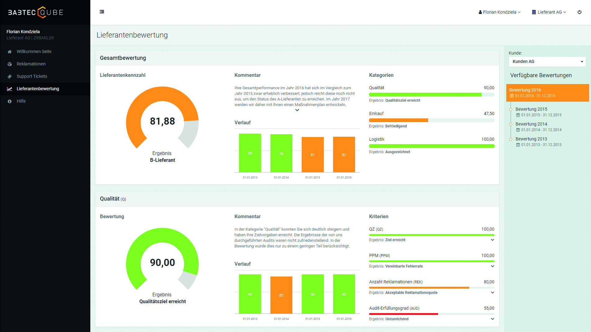 Übersichtlich dargestellt: Lieferantenbewertungen im Babtec Qube