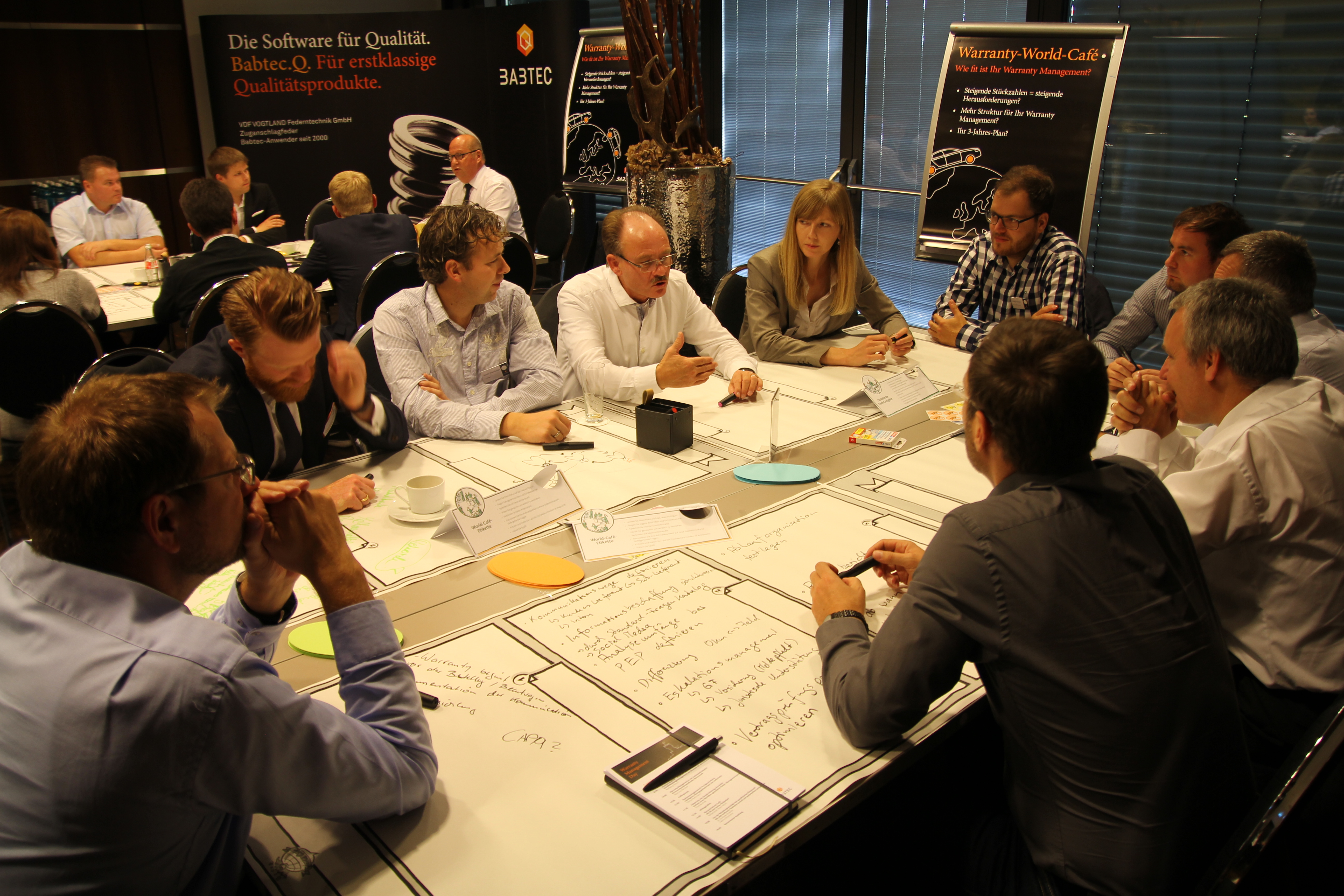 70 Experten aus ganz Deutschland kamen zum 2. Warranty Management Day nach Geisenheim. Bei einem World-Café-Workshop wurde kreativ über neue Lösungsansätze rund um Gewährleistung diskutiert.