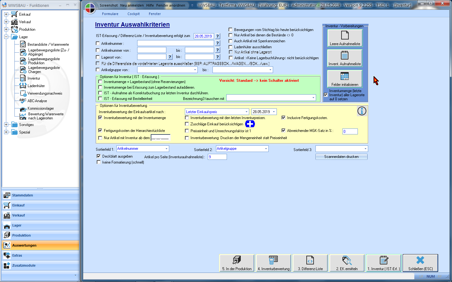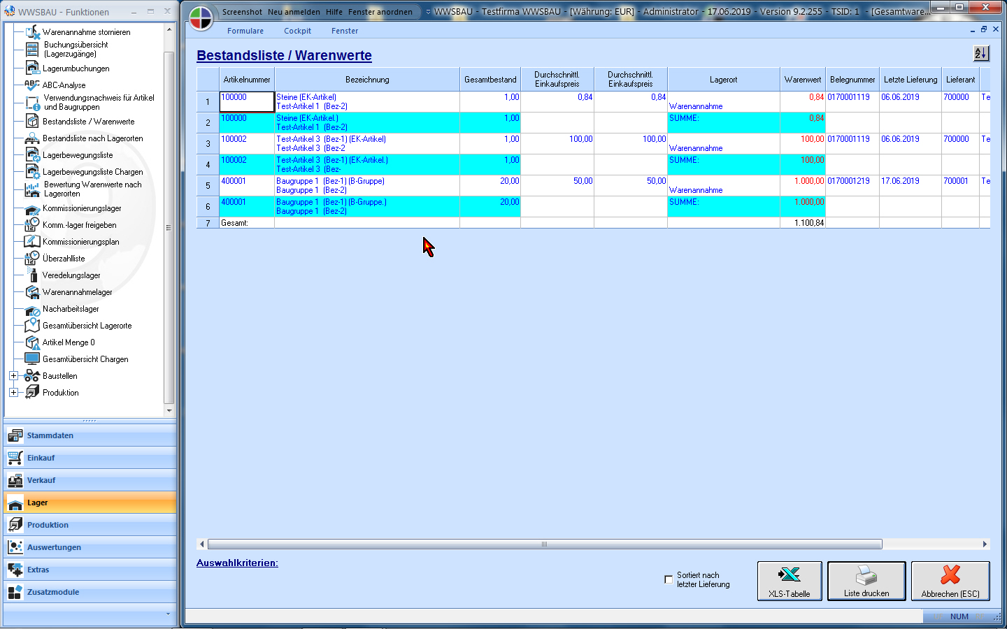 Lagerverwaltung: Bestandsliste Warenwerte