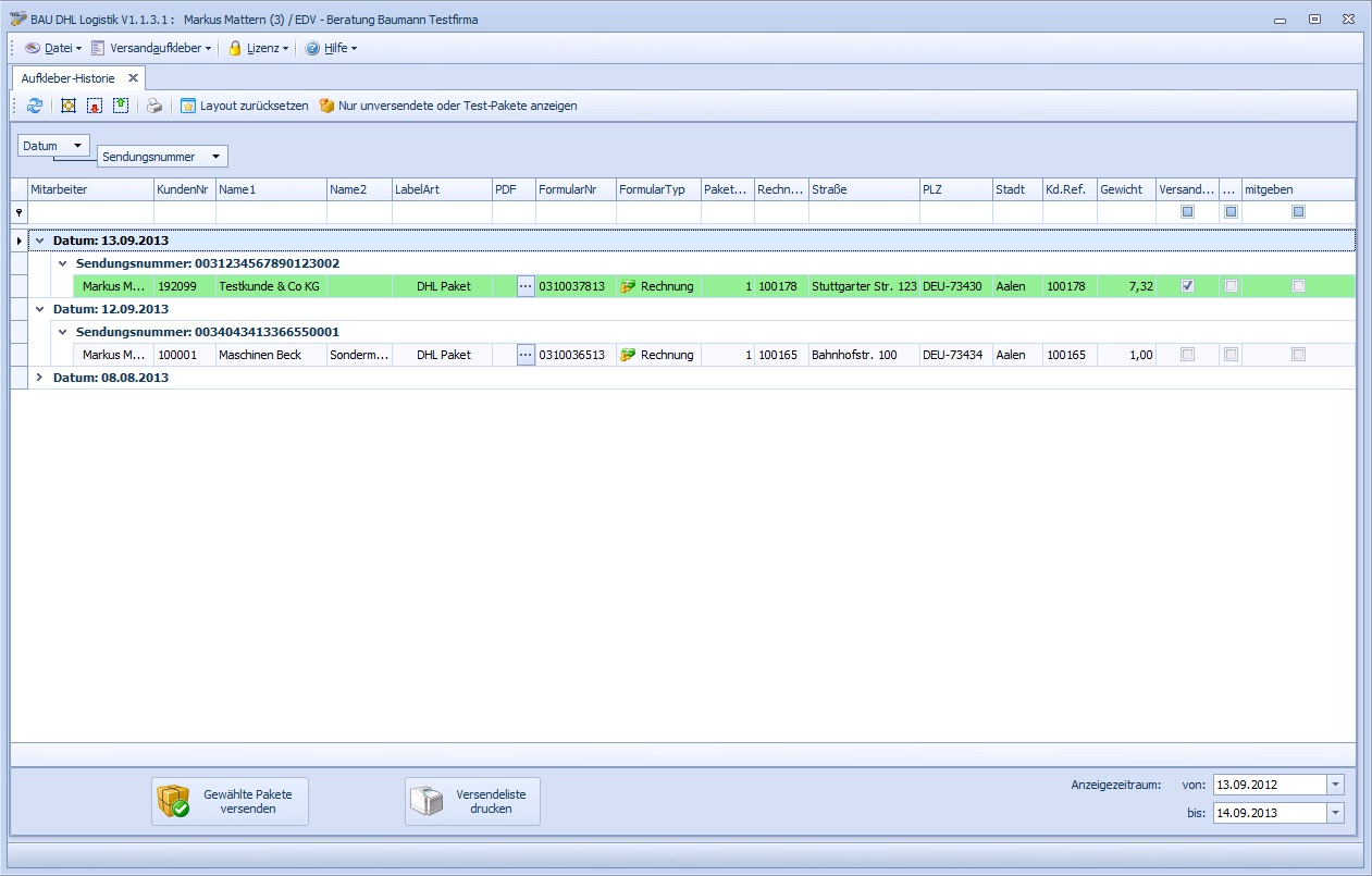 WWSBAU: Historie/DHL-Versandliste