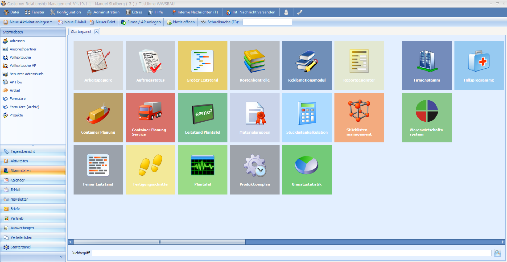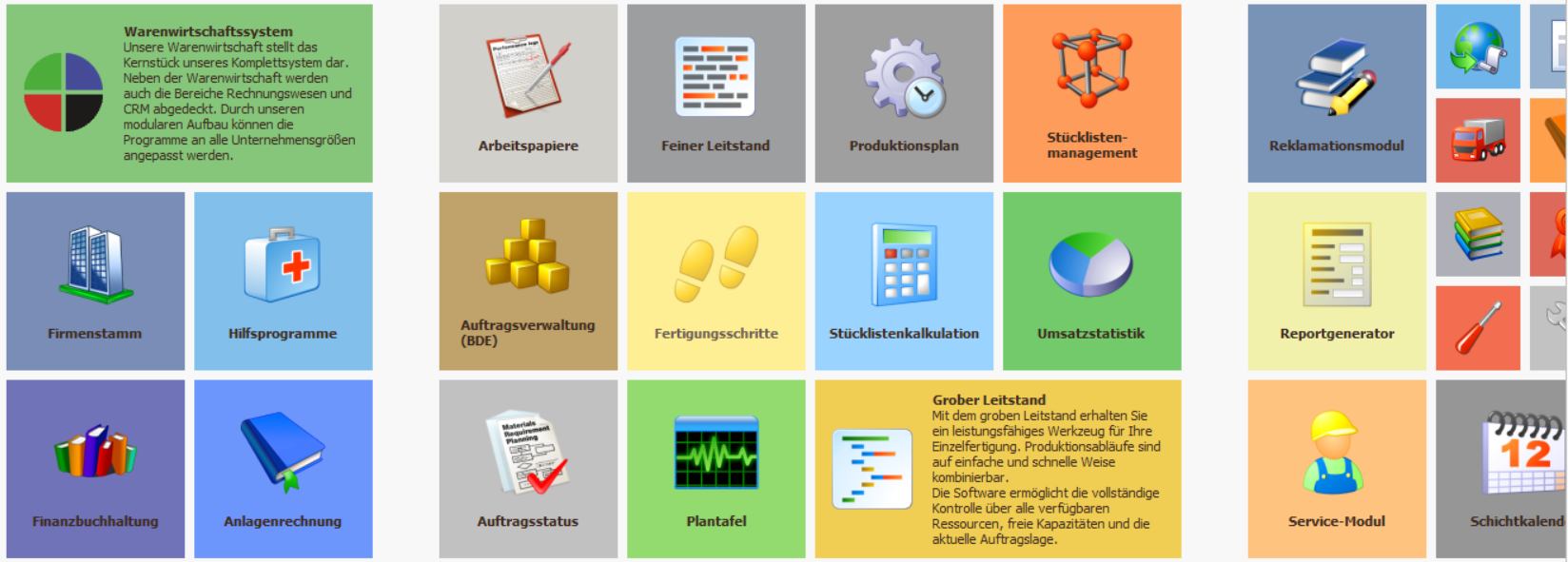 Beispiel für die Anordnung der Kacheln im StarterPanel der Baumann Warernwirtschaft