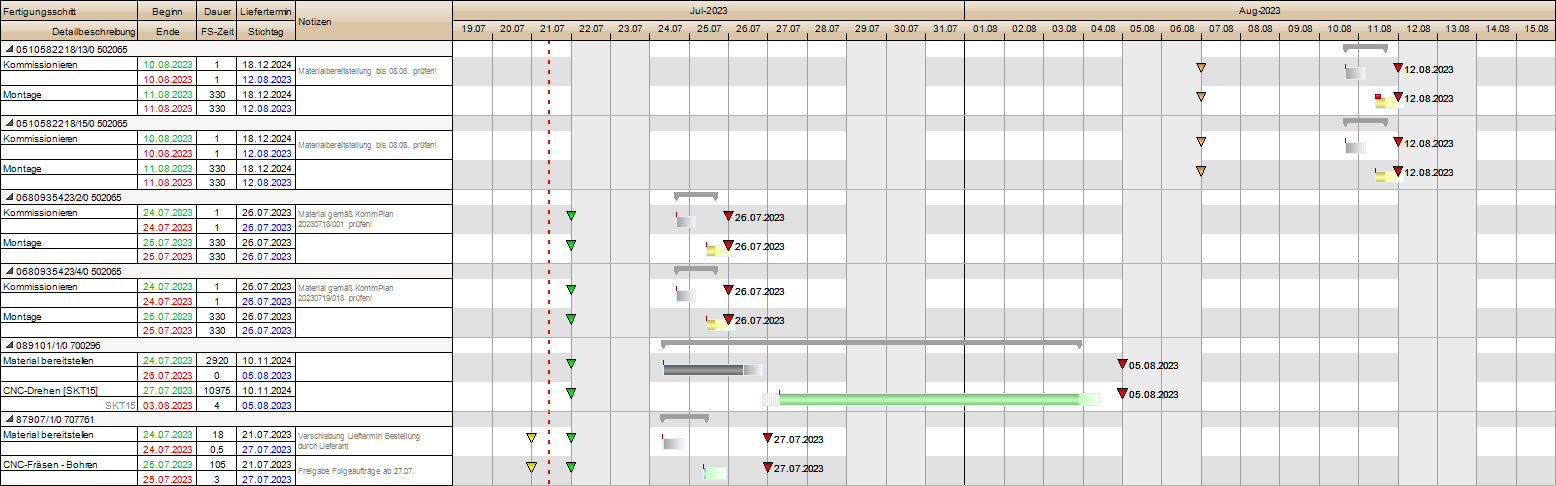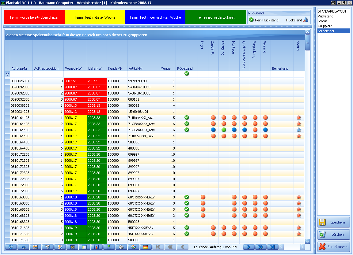 Überblick über die Produktion im Groben Leitstand des BAUMANN ERP-Systems