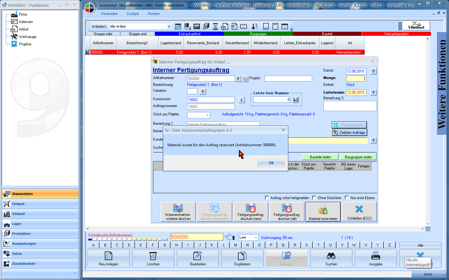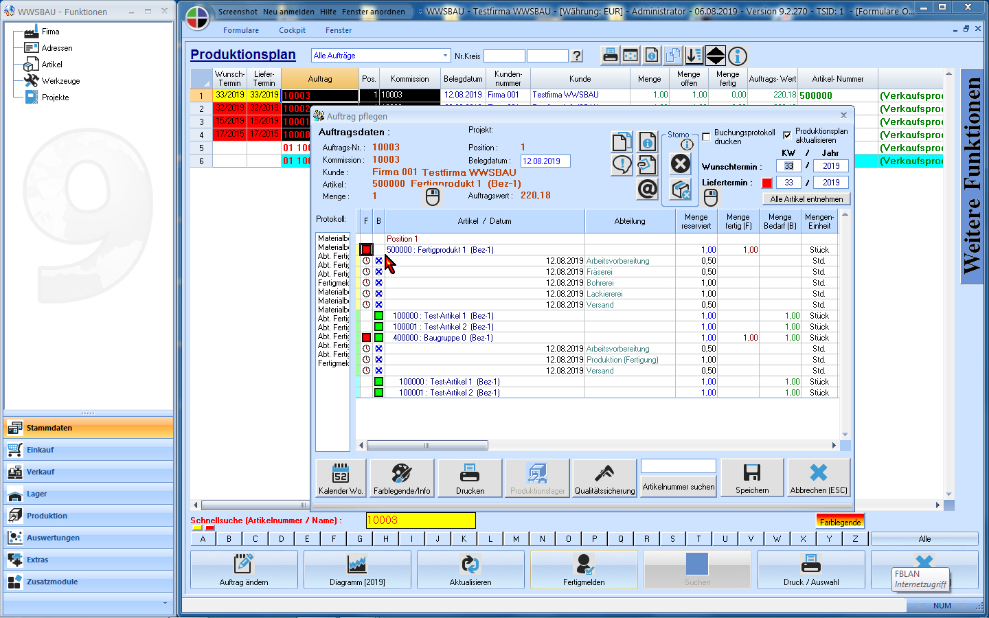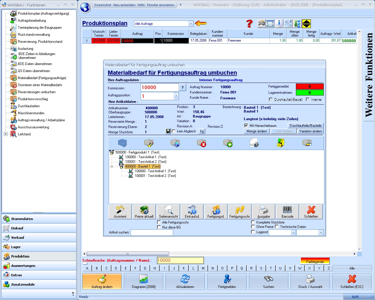 Fertigungsauftrag/Materialbedarf