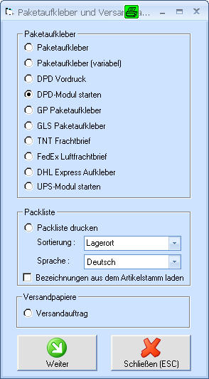 WWSBAU: Automatischer Druck eines DHL-Labels