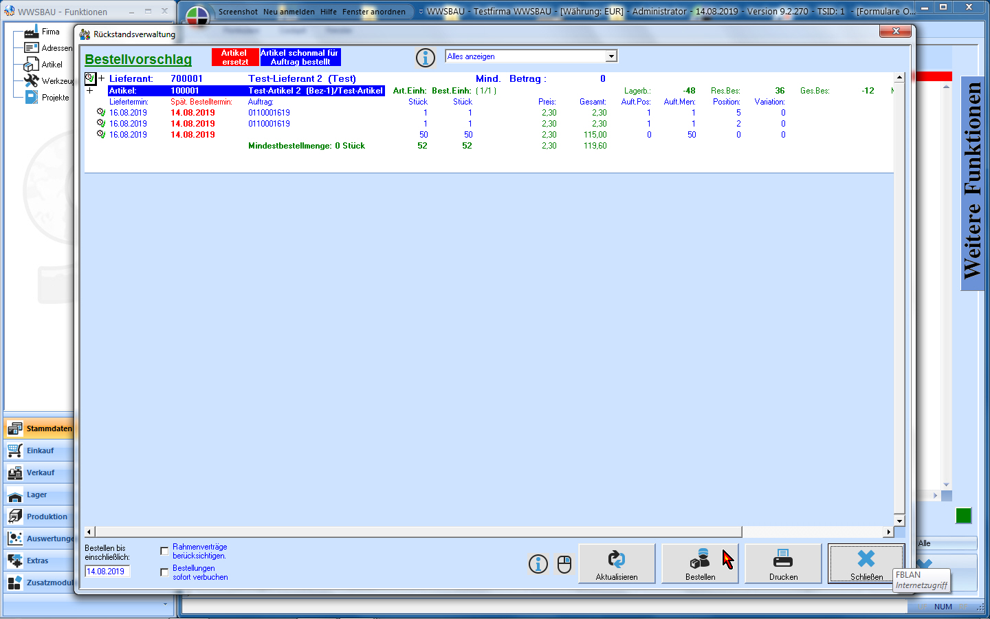 Einkauf: Bestellvorschlag