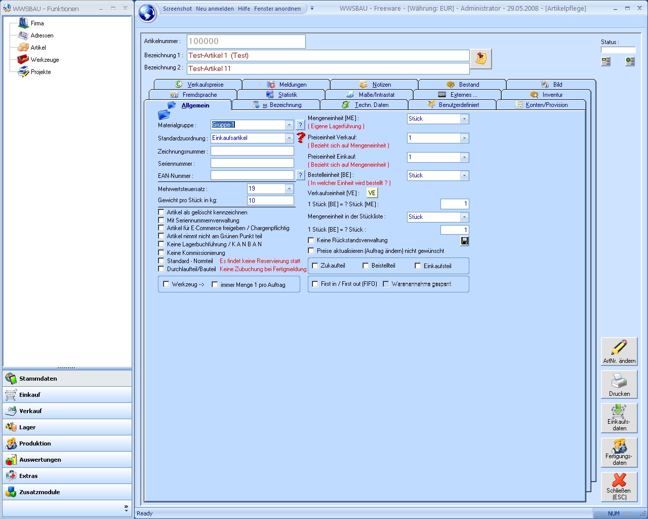 Verkaufsprodukt mit Stückliste