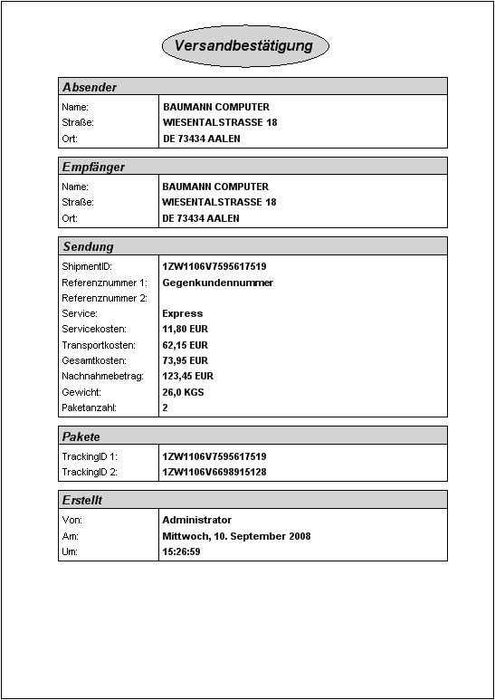 Versandbestätigung UPS
