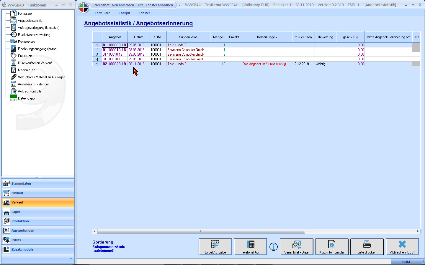 Verkauf: Angebotserinnerung