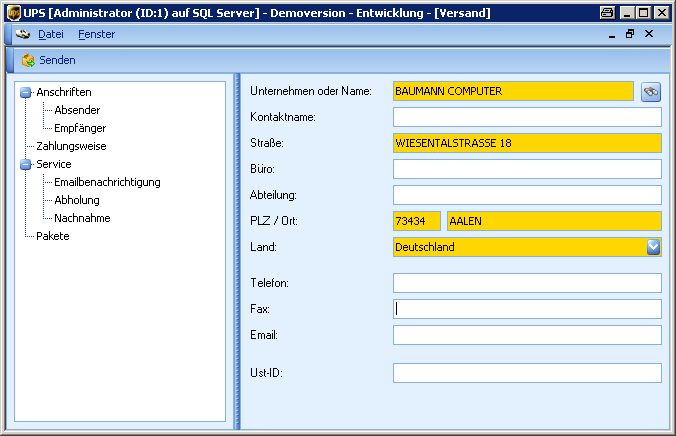 Menü für den Paketversand