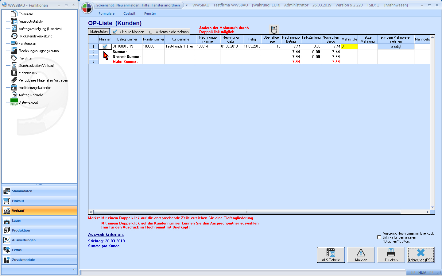 Verkauf: Offene-Posten-Liste