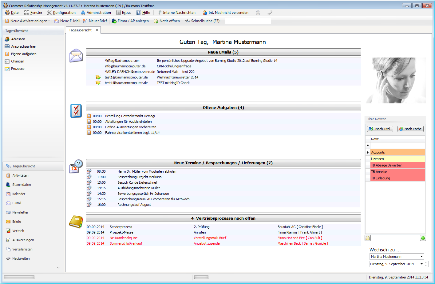 CRM - Tagesübersicht: E-Mails, Termine, Aufgaben, Vertriebsprozesse