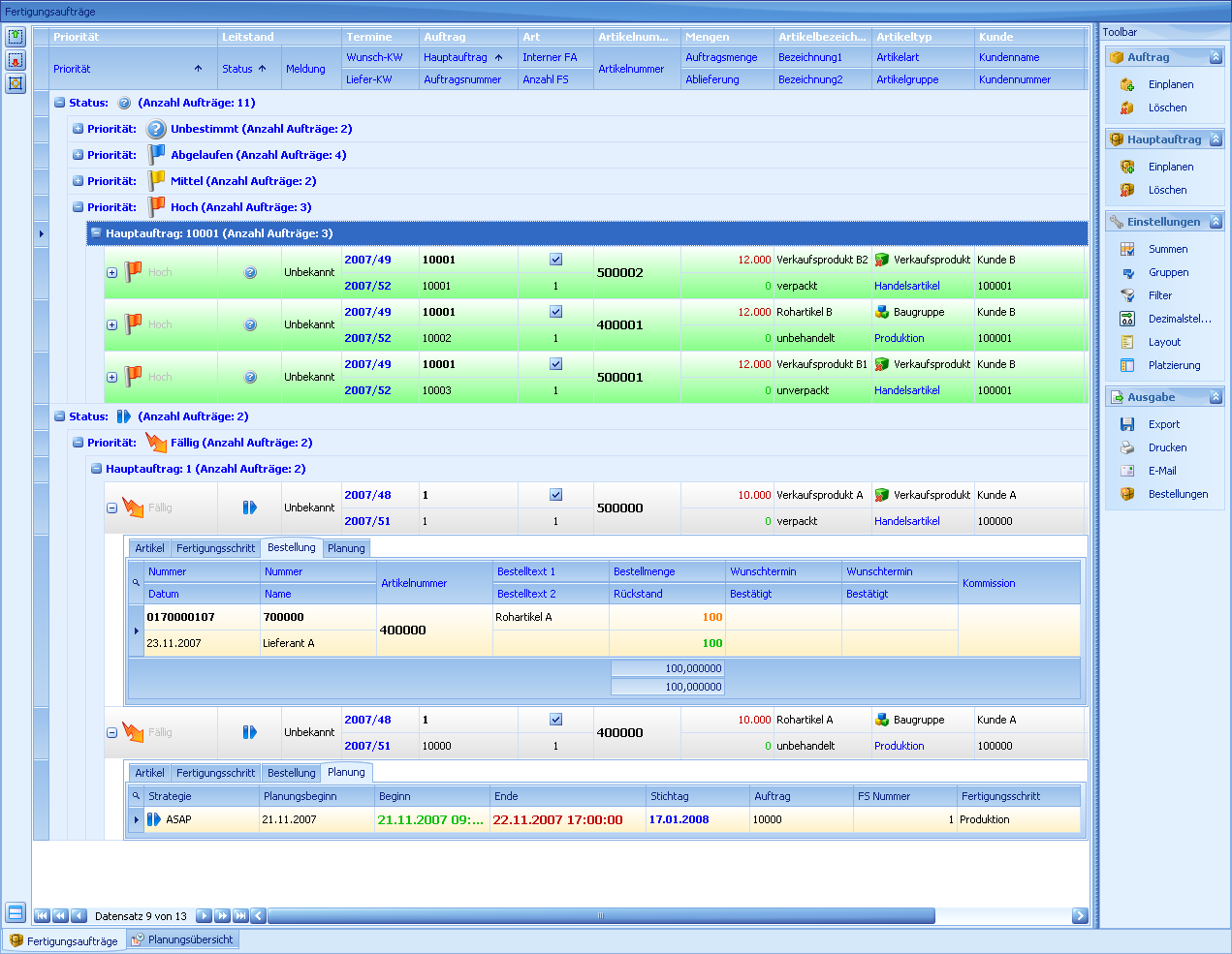 Der Grobe Leitstand für die Einzelfertigung