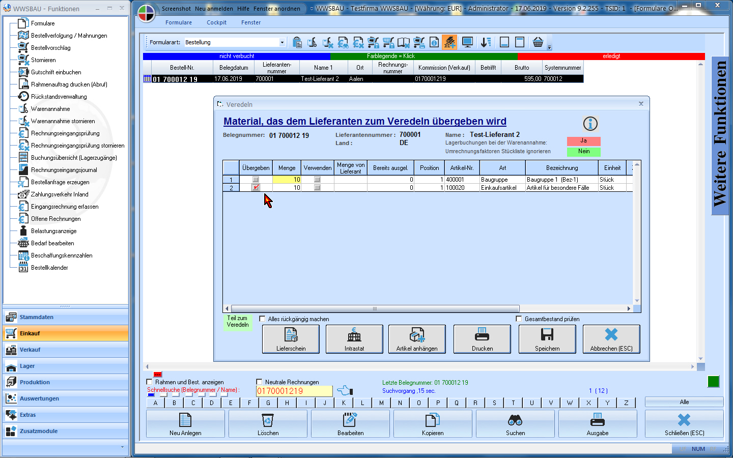 Einkauf: Veredelungsbestellung