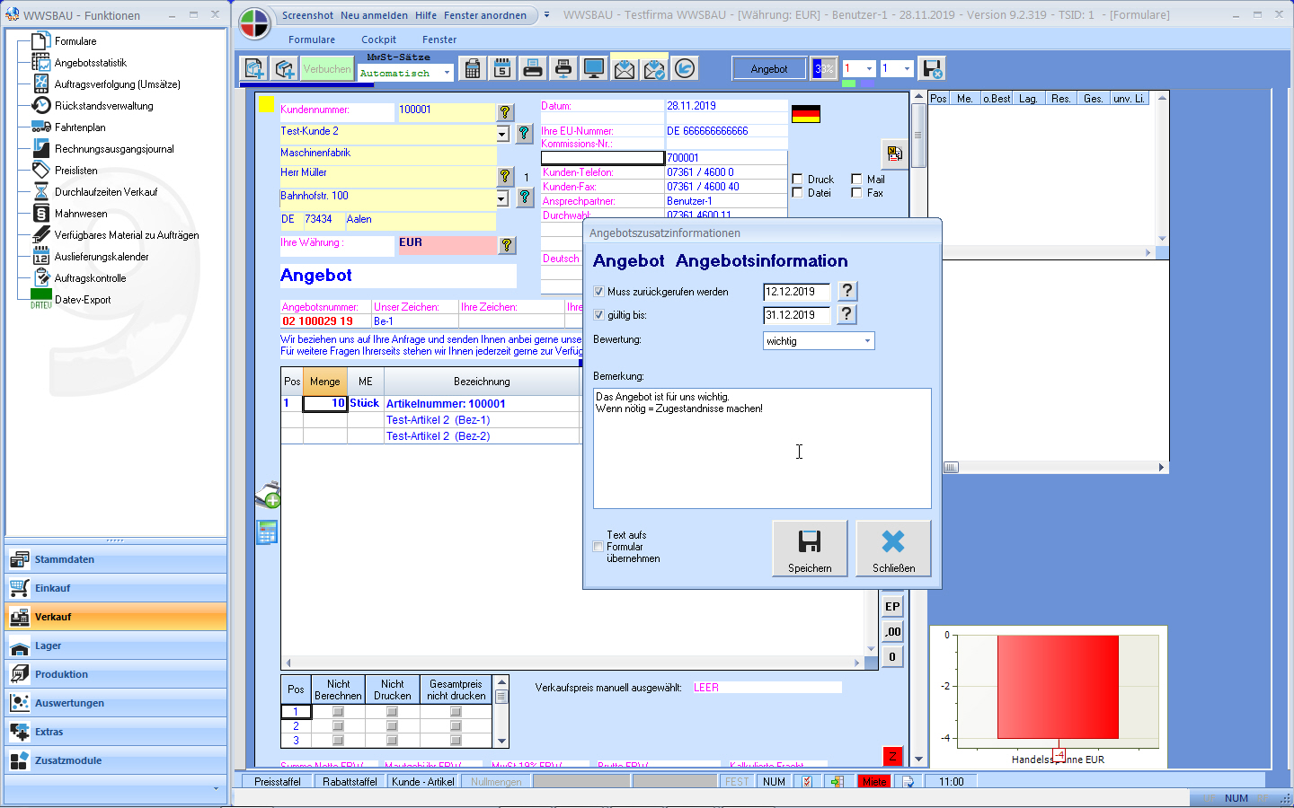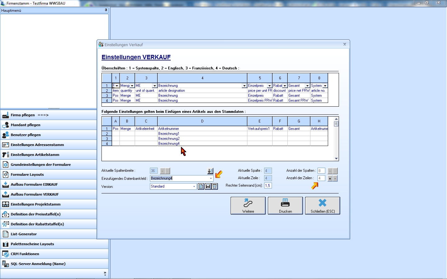 Firmenstamm: Einstellungen Verkauf